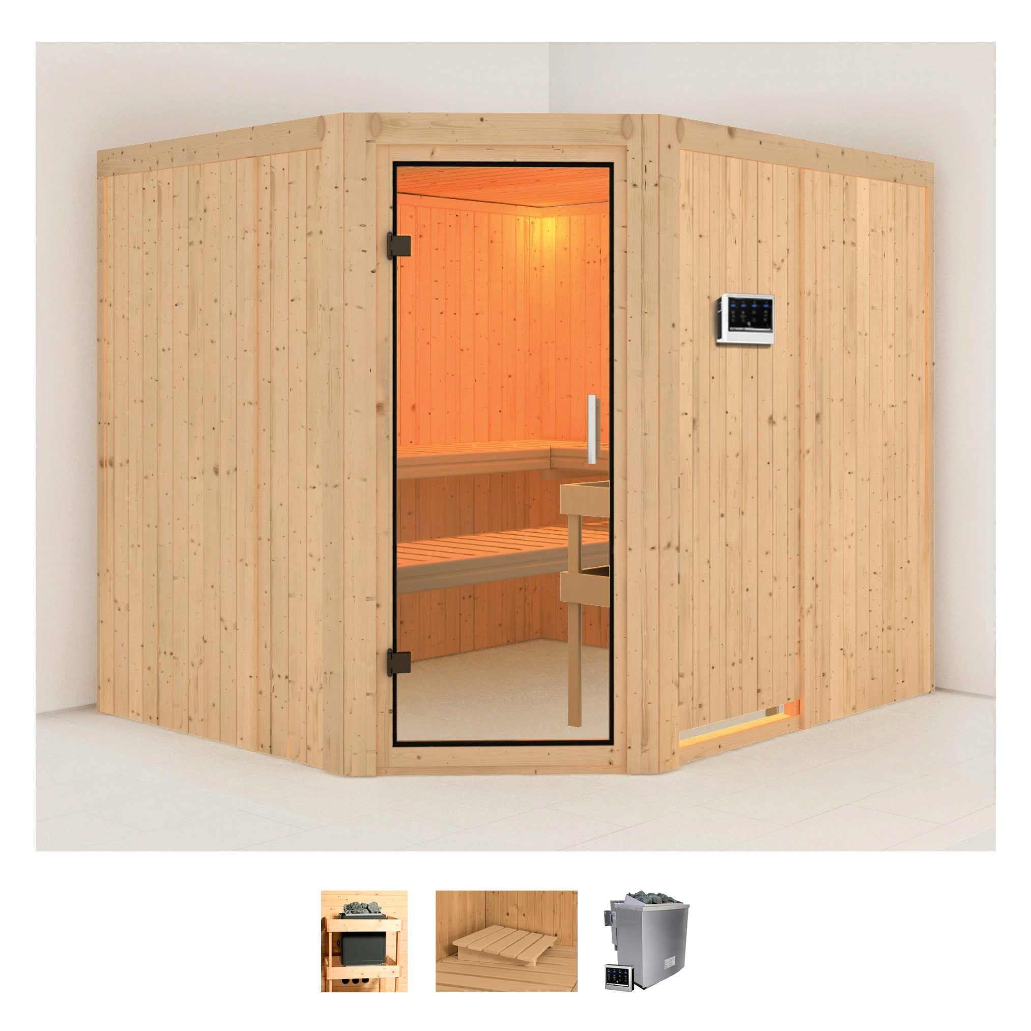 Karibu Sauna »Aline 3« Set, 9-kW-Ofen mit integrierter Steuerung