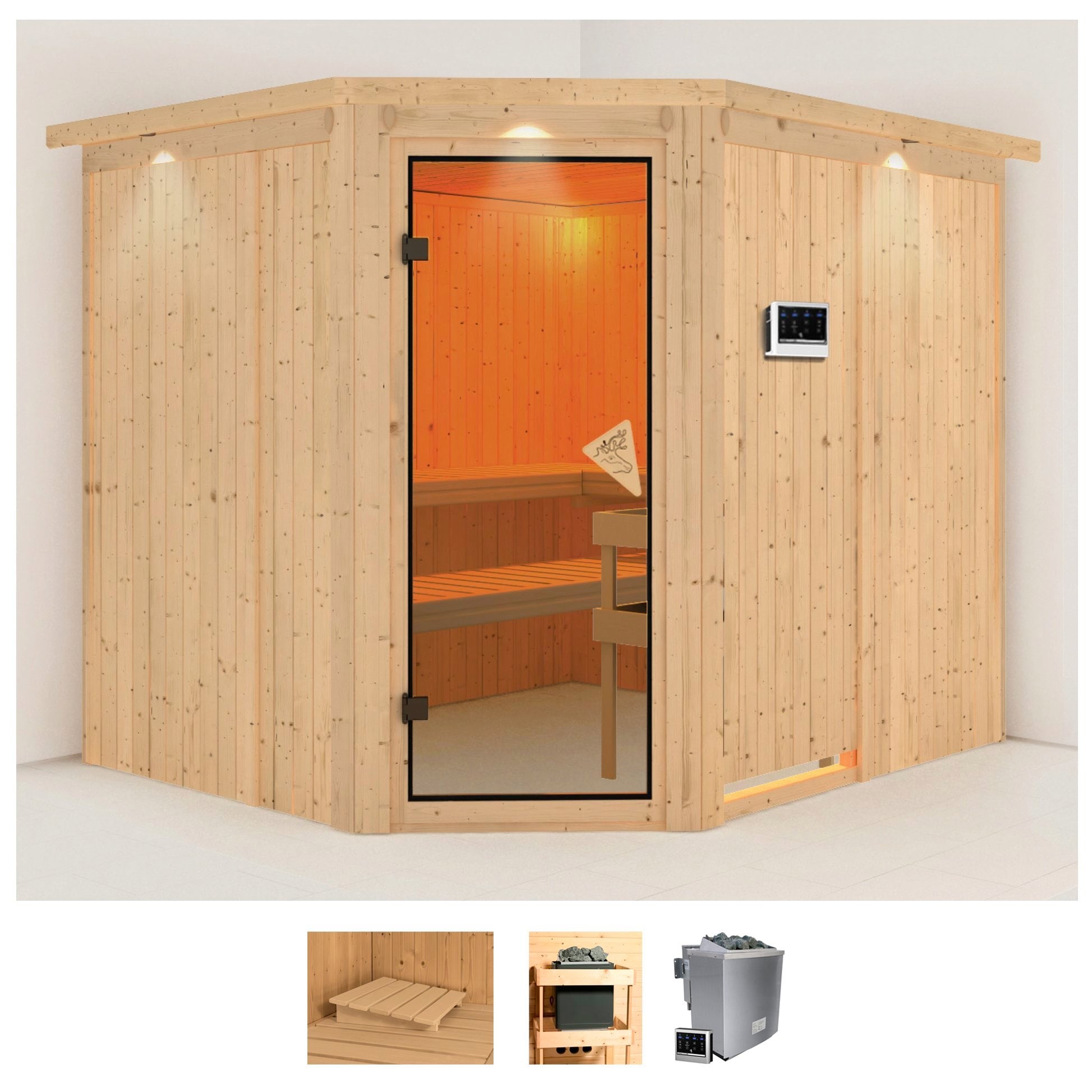 Karibu Sauna »Aline 3« Set, Ofen 9 kW Bio externe Strg easy