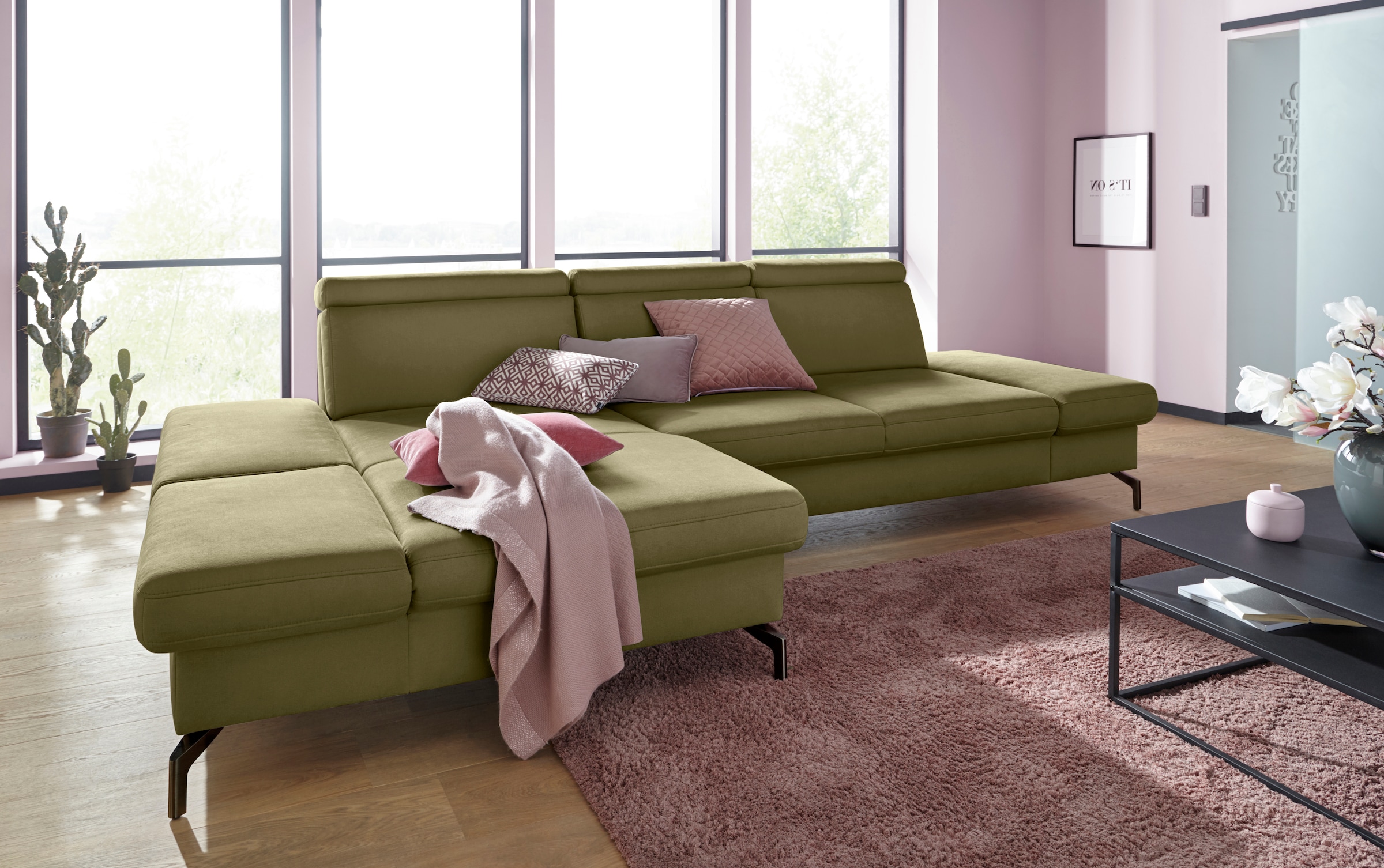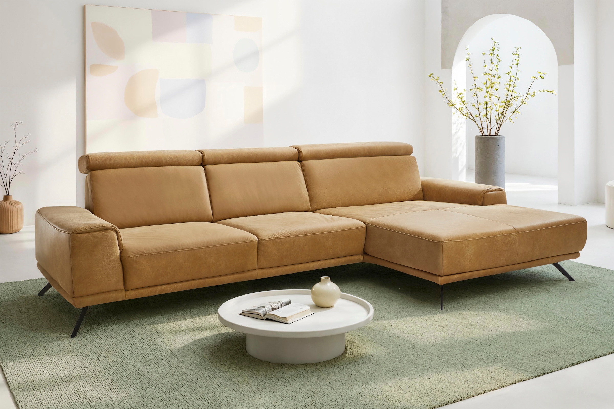 W.SCHILLIG Ecksofa »piedroo, Designsofa mit tollem Sitzkomfort, bequem und elegant, L-Form« Kopfteilverstellung, wahlweise mit Sitztiefenverstellung, Breite 303cm