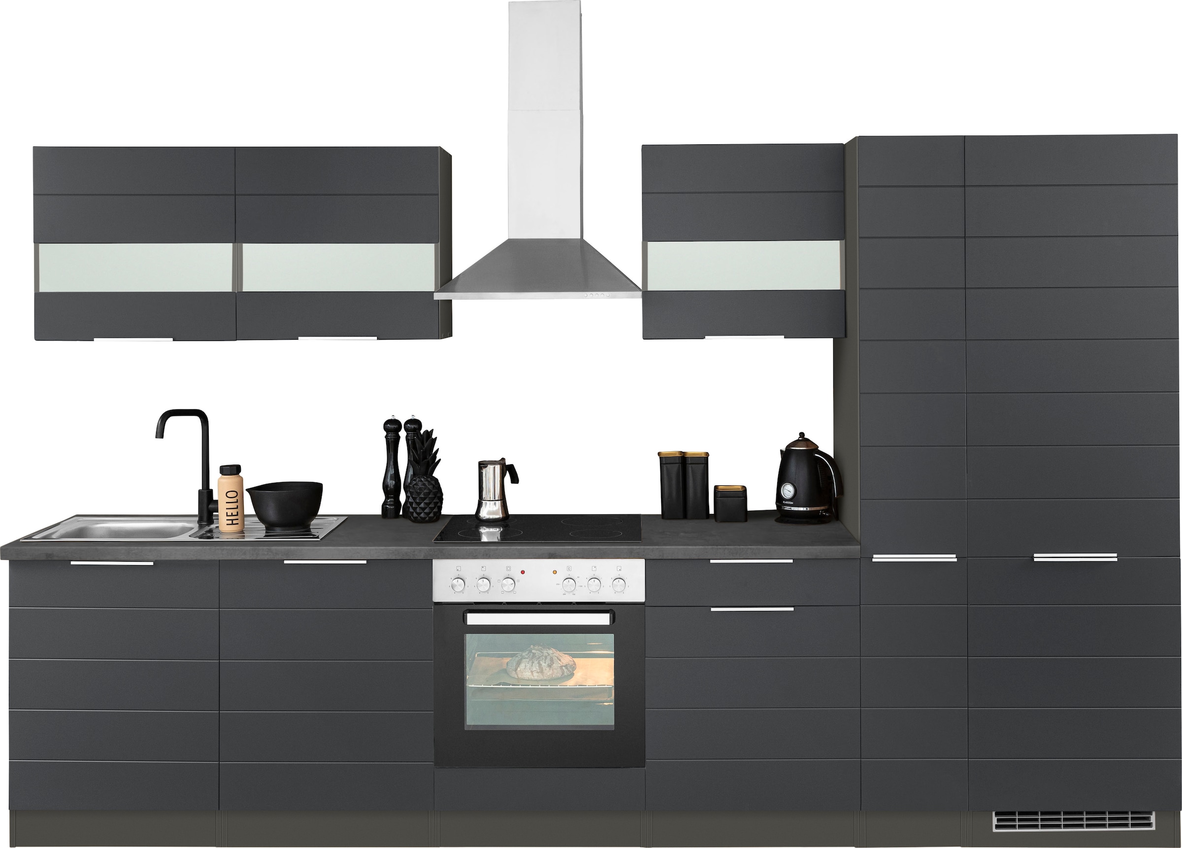 KOCHSTATION Küchenzeile »KS-Luhe« 330 cm breit, wahlweise mit oder ohne E-Geräten, gefräste MDF-Fronten