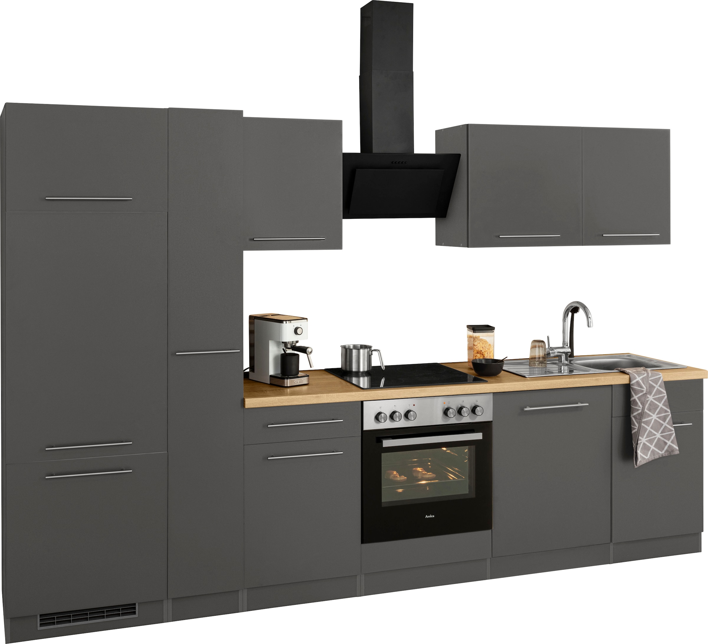 KOCHSTATION Küchenzeile »KS-Luhe« 360 cm breit, wahlweise mit oder ohne E-Geräten, gefräste MDF-Fronten