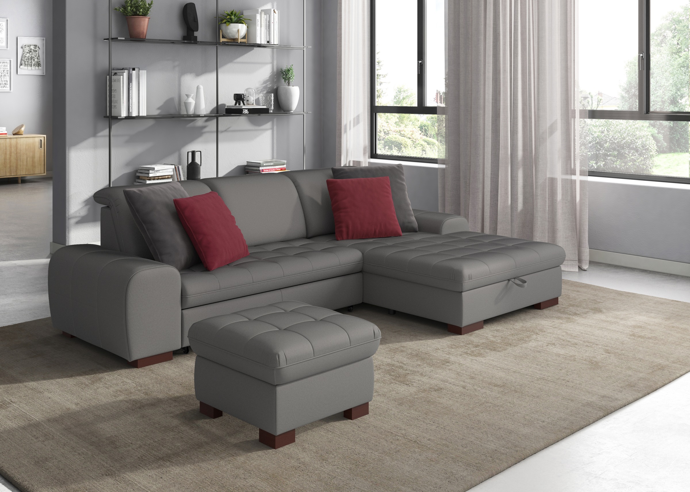 - Wahlweise mit Bettfunktion, und Bettkasten, und Kopfteilverstellung