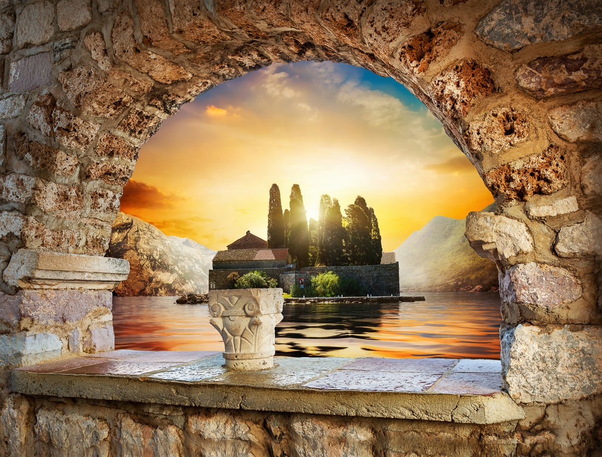 - Ihr Wunschmotiv SONNENUNTERGANG-PALMEN STRAND MEER SEE OZEAN KARIBIK Inklusive Tapetenkleister