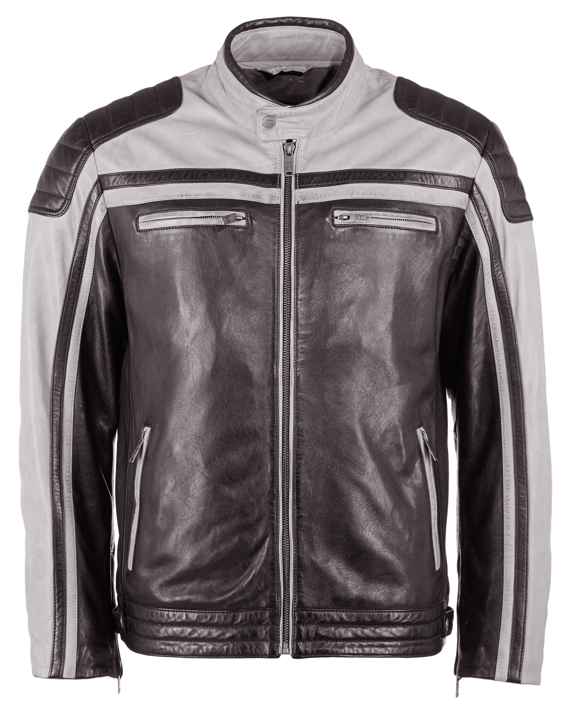 Diese Jacke im Bikerstil besitzt zwei Seitentaschen mit verdeckten Reißverschlüssen, schönen Polsterungen an den Ellenbogen, feinste Absteppungen im Schulterbreich sowie einen kurzen Stehkragen. Komfortable Seitentaschen sowie eine Brusttasche mit Zipper und 3 Innentaschen sind in der Jacke eingearbeitet. Sie wird mit einem geraden Reißverschluss verschlossen. Die Jacke hat eine bequeme Passform.