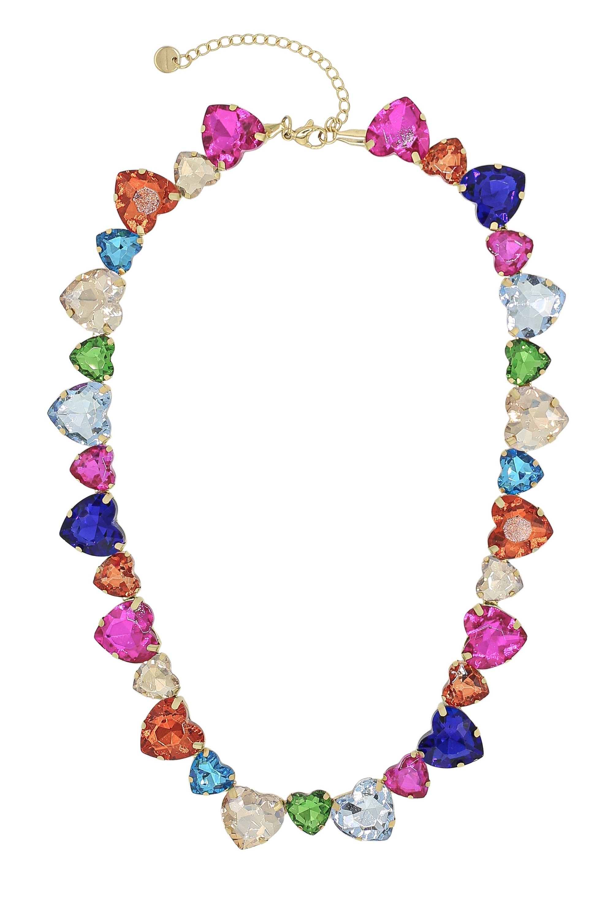 Diese opulente Statementkette steht für ein besonderes Lebensgefühl. Die Glassteine und kleinen Muscheln werden von Hand befestigt. Die Kettenglieder sind mit einem farblich passendend Band durchzogen und die Blütte mit kleinen Glassteinensind ist ein Hingucker. Das Collier verleiht Ihrem Outfit den letzten Schliff. 100 % REACH-Konform. Jedes Stück ist ein Unikat.