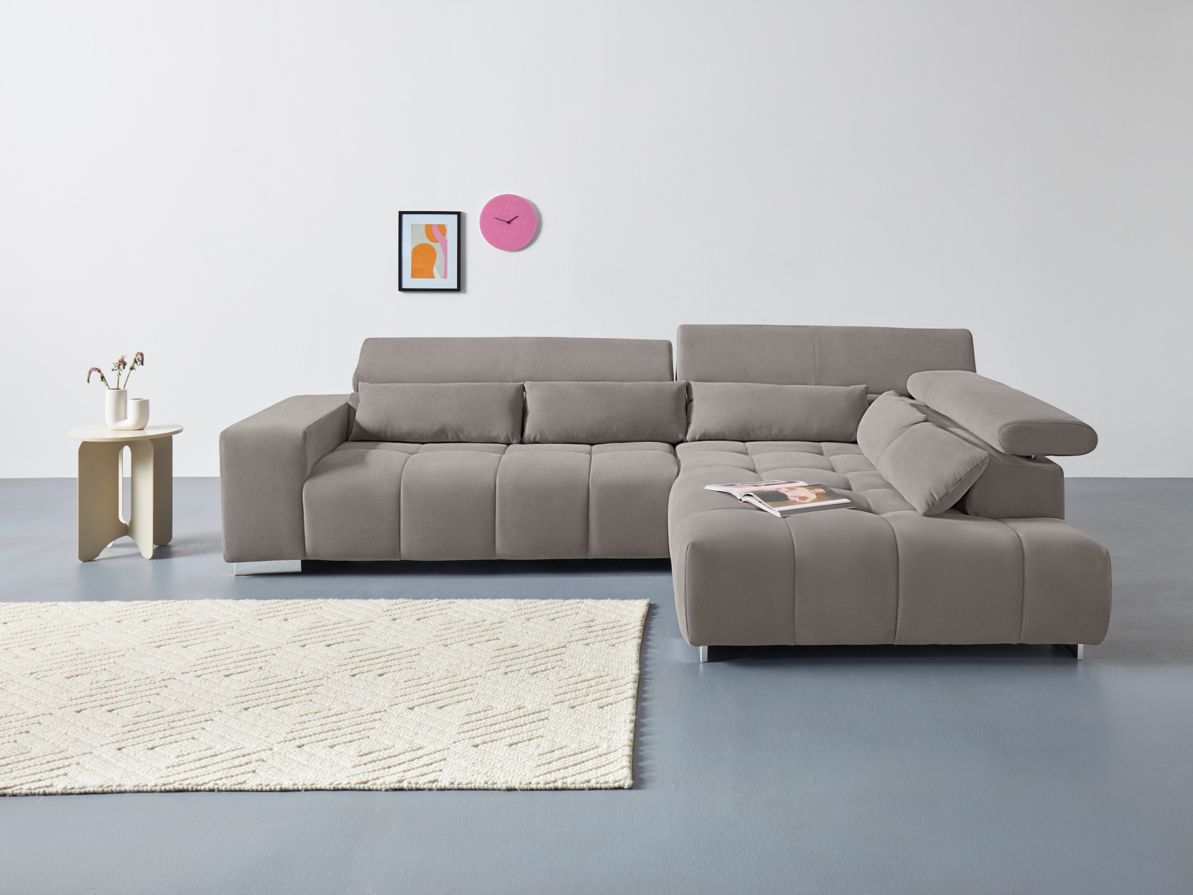 COTTA Ecksofa »Orion L-Form« mit Kopfteilverstellung & 5 Nierenkissen