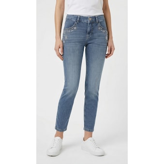 Figurbetonende Damen-Slim-fit-Jeans der Marke MAC. Normale Beinform mit enger werdendem Verlauf sowie hohe Leibhöhe. Verziert mit einem Markenlabel. Vielseitig kombinierbar für Freizeitaktivitäten. Die Hose ist durch den unempfindlichen und robusten Jeansstoff sehr pflegeleicht.