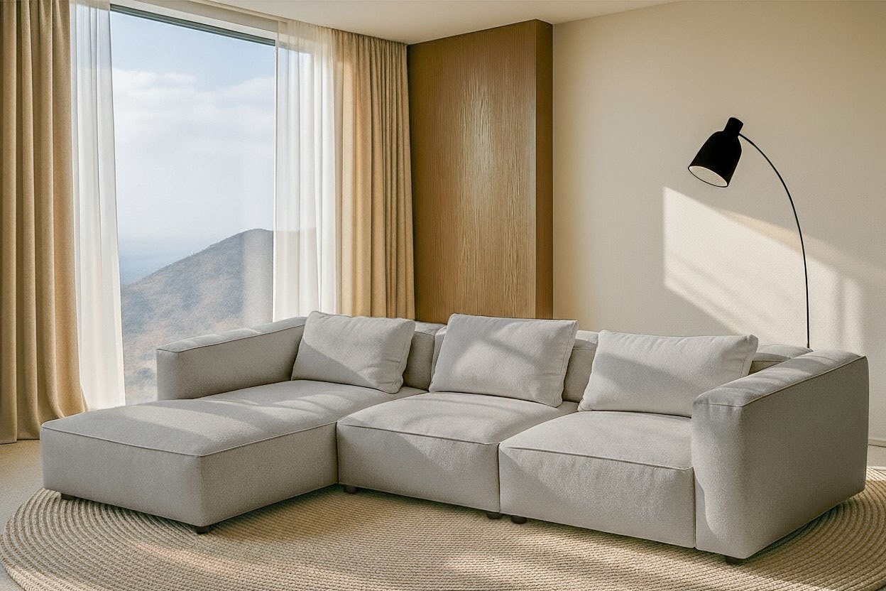 - bodentiefes Sofa mit großzügiger Recamiere