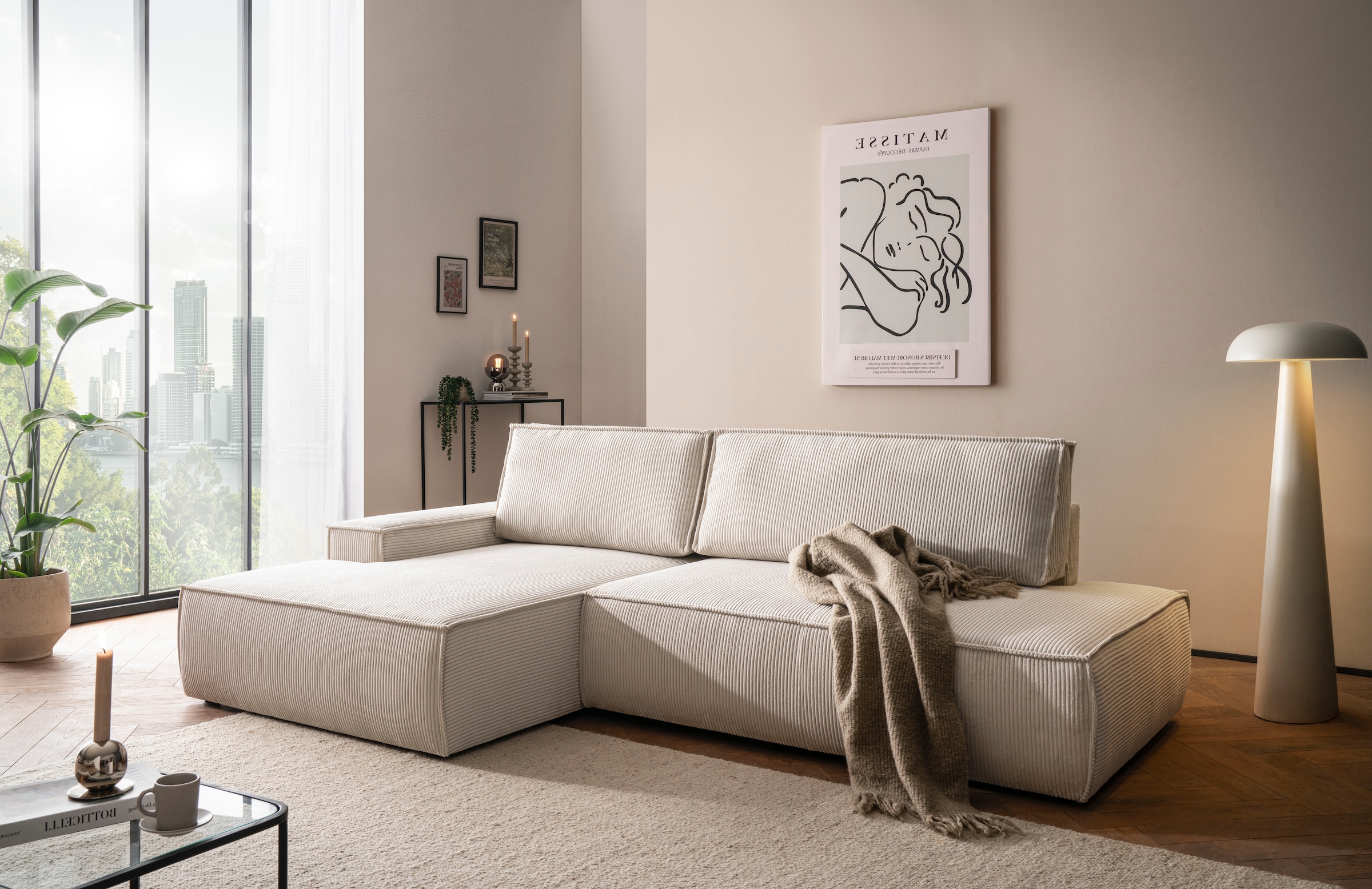 3C Candy Ecksofa »Matteo in elegant, kubischer Formensprache, bequem, L-Form« mit auffälliger Kedernaht, Feincord-Bezug, Lounge-Charakter