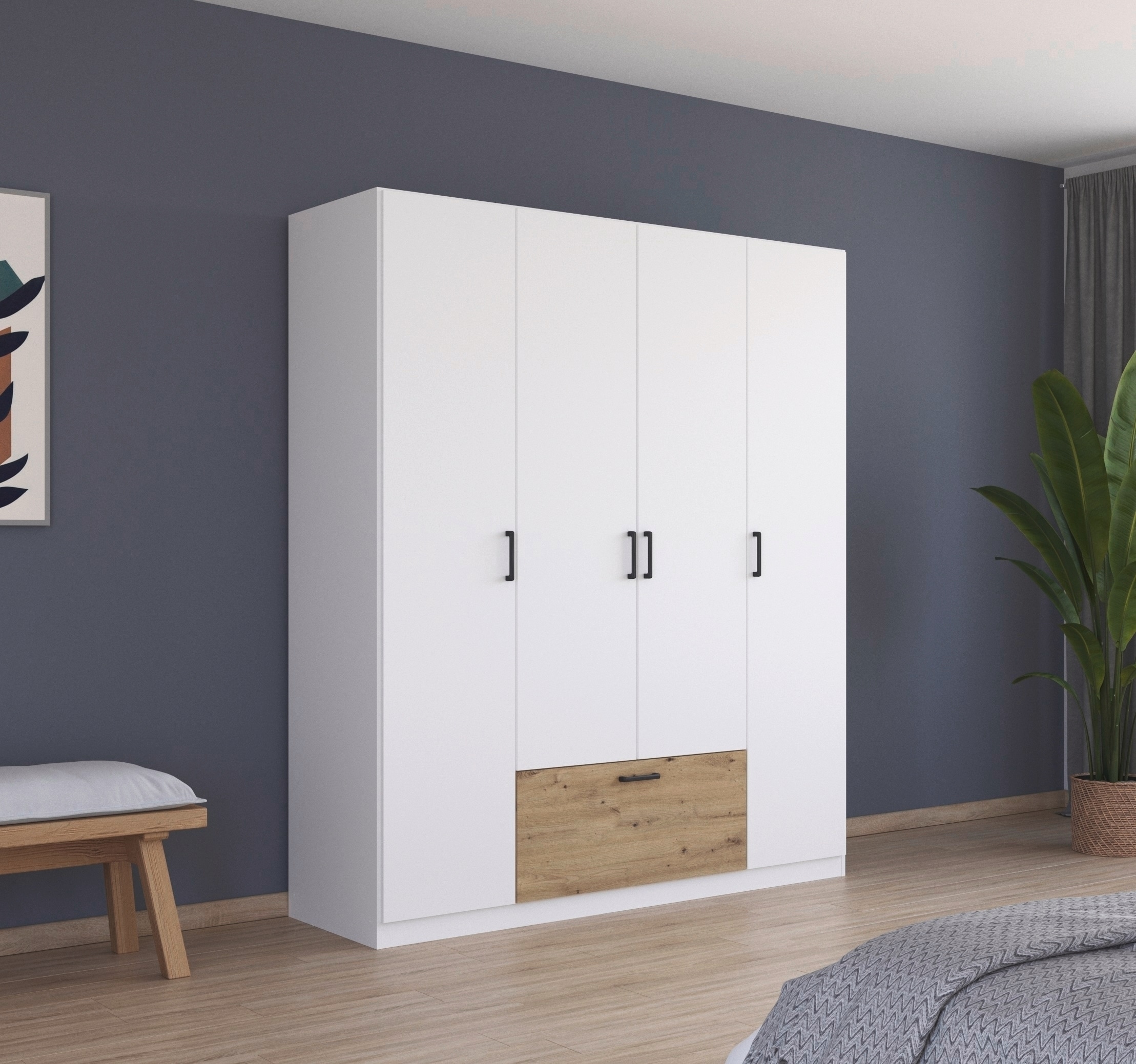 rauch Drehtürenschrank »Kleiderschrank Schrank Garderobe Wäscheschrank BARI« mit Schubasten mittig, moderner Griff in Graumetallic MADE IN GERMANY