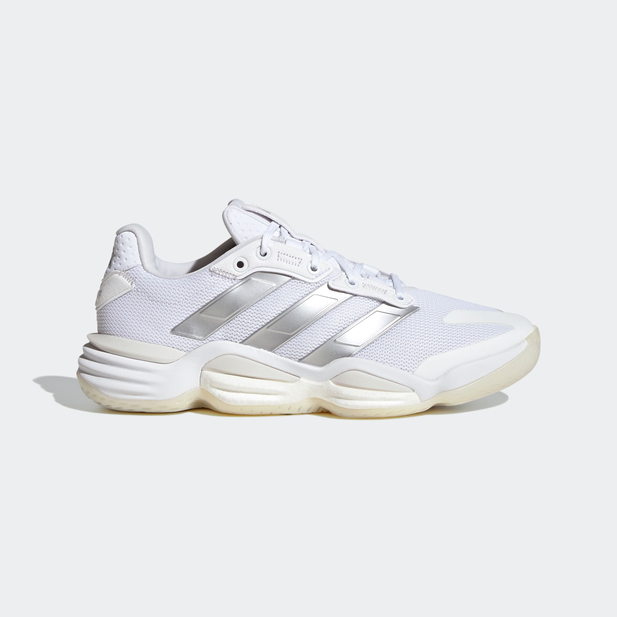 Dieser adidas Schuh mit innovativen Technologien pusht dich in Sportarten wie Handball, Volleyball oder Hallenhockey. Die adidas BOOST Zwischensohle sorgt für ein Plus an Komfort und Energierückgabe, während die ihn umgebende Chassis-Konstruktion dir die nötige Stabilität bei intensiven Matches gibt. Das Obermaterial mit Mesh-Zonen sorgt für mehr Atmungsaktivität und das weiche Futter passt sich deinem Fuß perfekt an. Signature-Details wie der verstärkte Zehenbereich sind eine Hommage an das Original und das neue Traktionsprofil ermöglicht dir blitzschnelle Richtungswechsel. Dank dieser Performance-Features kannst du deine Kraft und Energie bündeln und maßgeblich zum Sieg deines Teams beitragen. Dieses Produkt ist mit mindestens 20 % recycelten Materialien hergestellt. Die Wiederverwendung bereits vorhandener Materialien hilft uns dabei, Müll zu reduzieren, unsere Abhängigkeit von nicht erneuerbaren Ressourcen einzuschränken und den CO2-Fußabdruck unserer Produkte zu verringern.