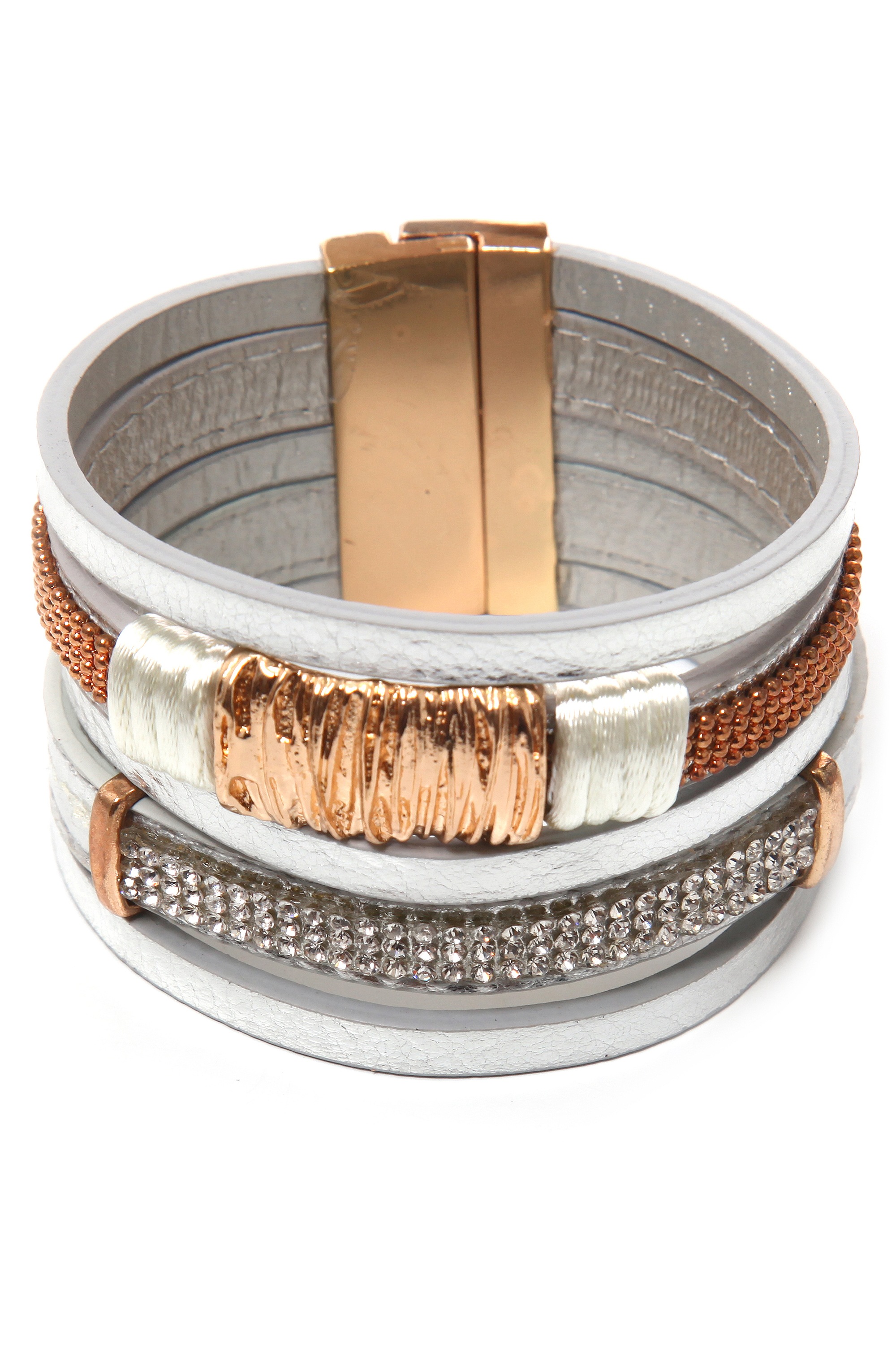 6-reihiges Velourarmband in tollem türkis und weißen Strass-Steinen mit Magnetverschluss