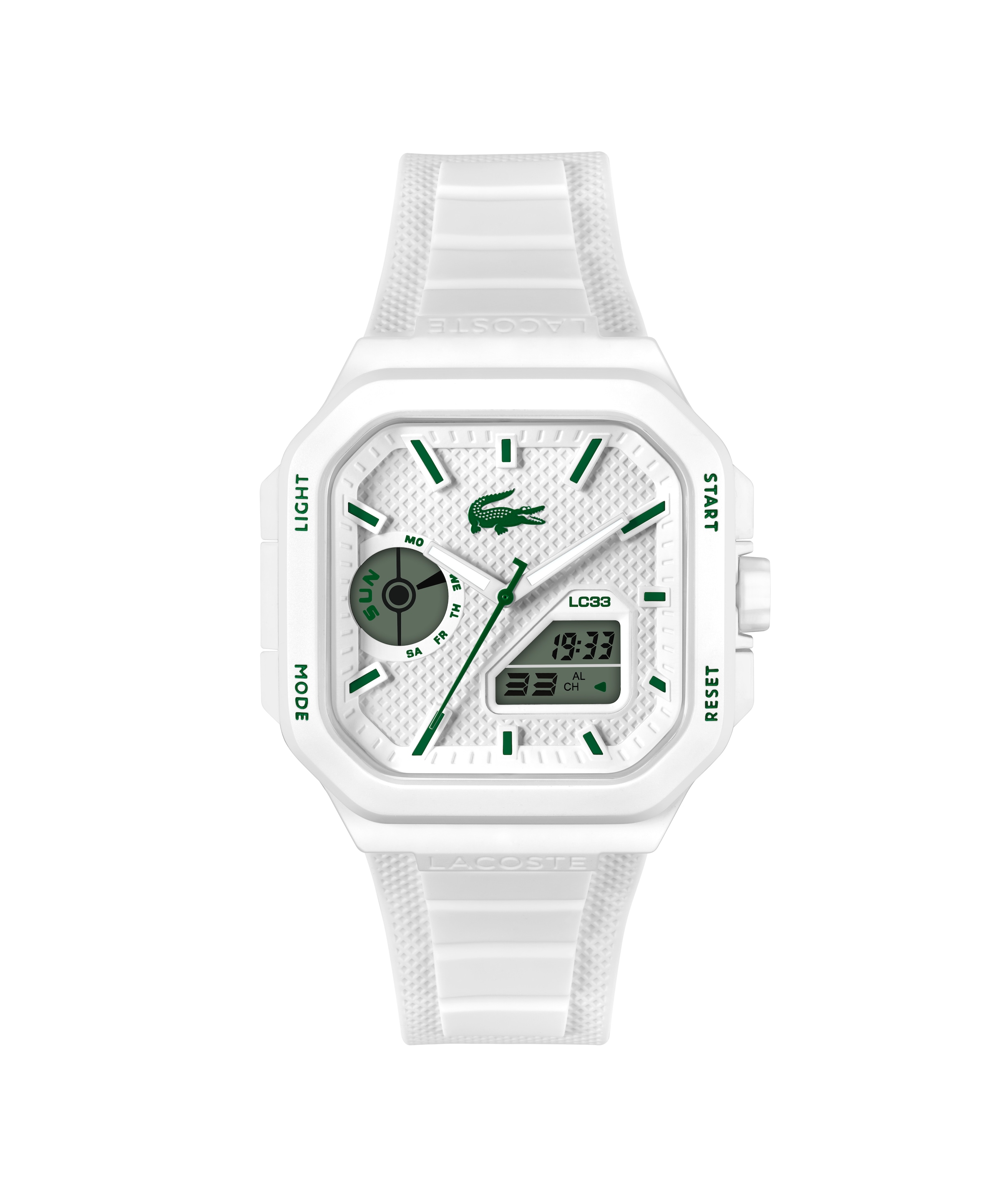 Lacoste Chronograph »LC33« Armbanduhr, Herrenuhr, Silikonarmband, analog, digital