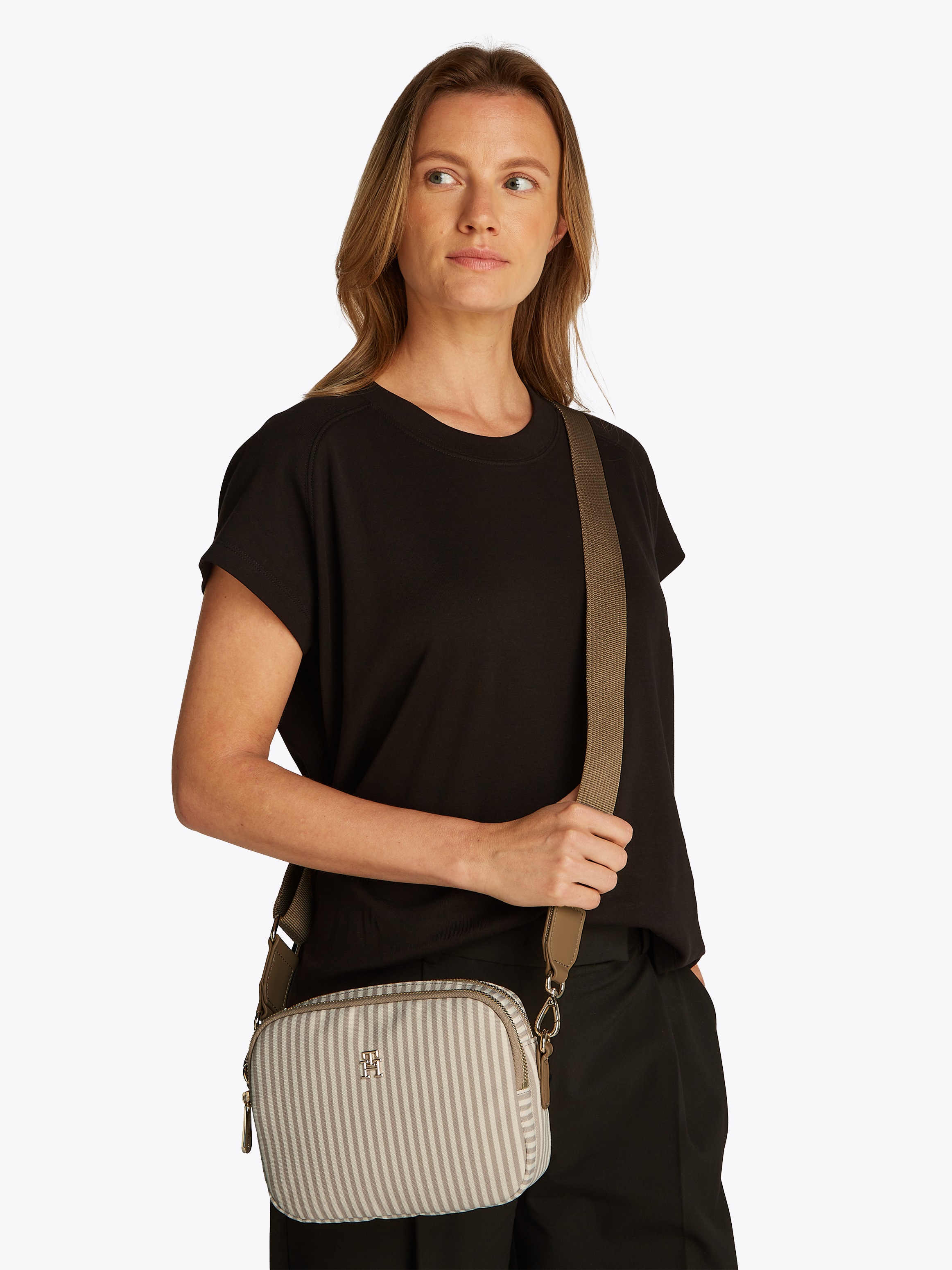 Tommy Hilfiger Kameratasche »POPPY SUMMER CAMERA BAG« , Damen Umhängetasche, Schultertasche, Minibag mit Streifen