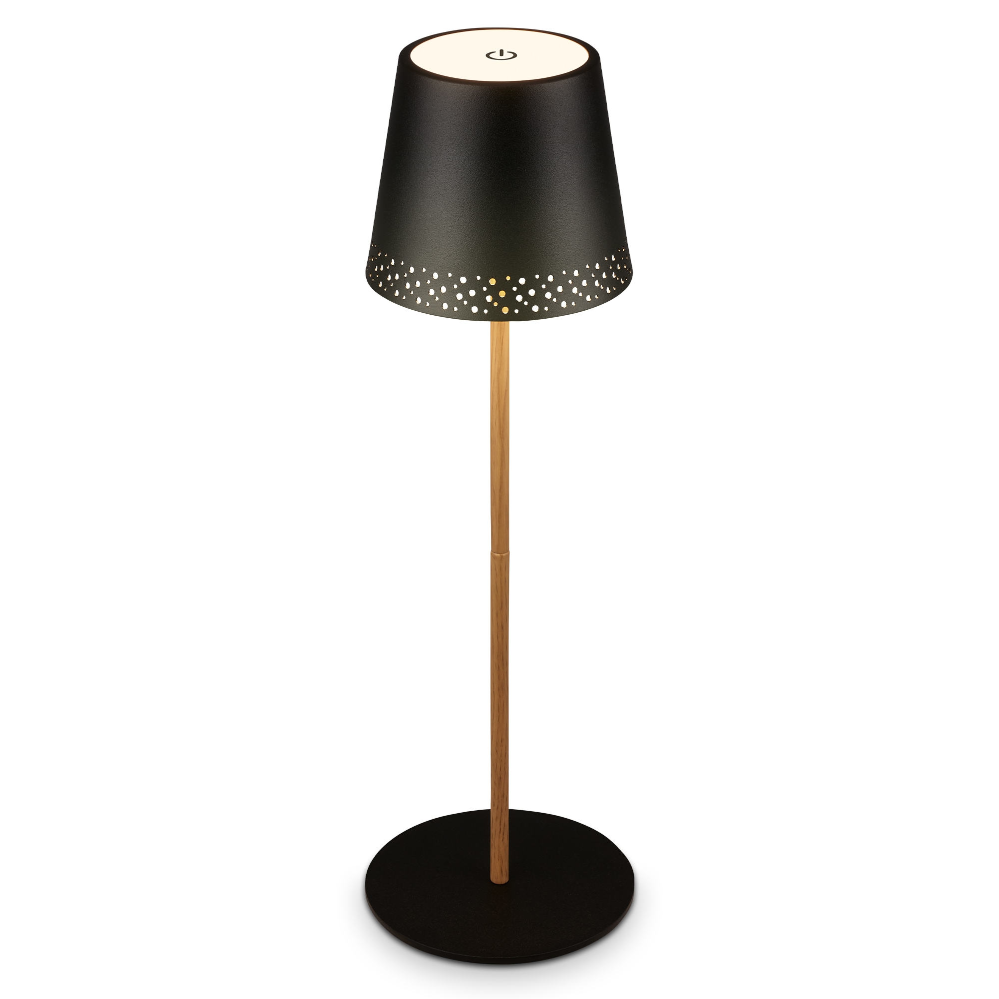 - Aufladbar ist die 3,5 Watt LED Lampe per USB-C Kabel, welches im Lieferumfang ist. Die kabellose Standlampe misst 1300x190 mm (HxD) und besitzt einen perforierten Metallschirm
