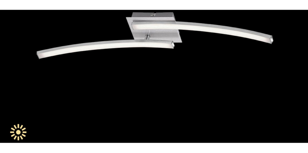 Diese moderne LED Deckenlampe, gefertigt aus Metall-Kunststoff, wird durch das edle schwarze Design zu einem echten Hingucker - Durch die zwei LED Stäbe wird das Licht optimal im Raum verteilt und sorgt so für eine perfekte Ausleuchtung - vielseitig einsetzbar z.B. als Wohnzimmerlampe, Schlafzimmerlampe, Küchenlampe oder Flurlampe - Die fest verbauten LED Module überzeugen mit energiesparenden 12 Watt (je 6 Watt), einer Lichtleistung von insgesamt 960 Lumen (je 480 Lumen) und einer Farbtemperatur von 3.000 Kelvin (warmweiße Lichtfarbe) - Die hohe durchschnittliche Lebensdauer liegt bei ca. 20.000 Stunden - durch die Schutzart IP20 ist diese Leuchte nur für den Gebrauch im Innenbereich vorgesehen - Produktabmessungen: 560x120x36mm (LxBxH)