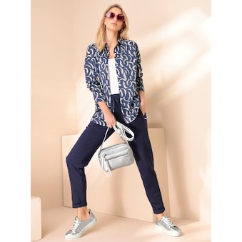 Der Saum der Bluse ist leicht gerundet. Sie weist eine Rückenlänge von 68 cm auf, der Hemdkragen und die durchgehende Knopfleiste runden das Gesamtbild harmonisch ab.