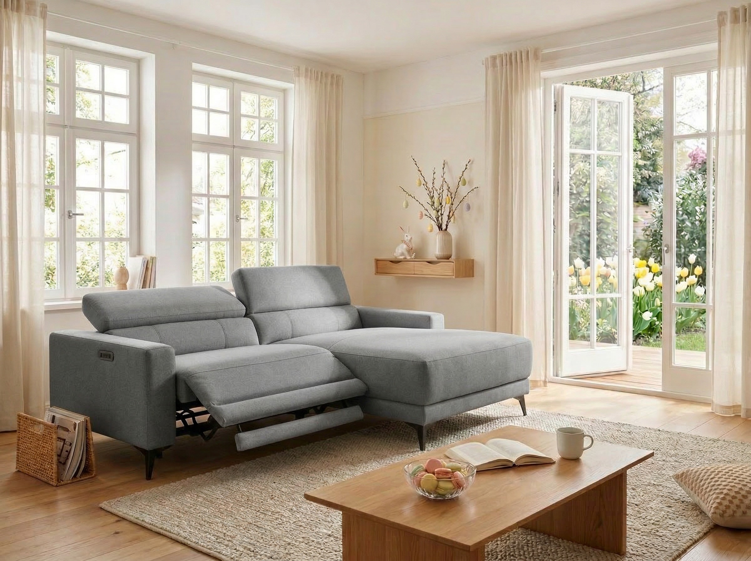 - Recamiere links oder rechts wählbar, Relaxfunktion links oder rechts auswählbar, manuell oder elektrisch.