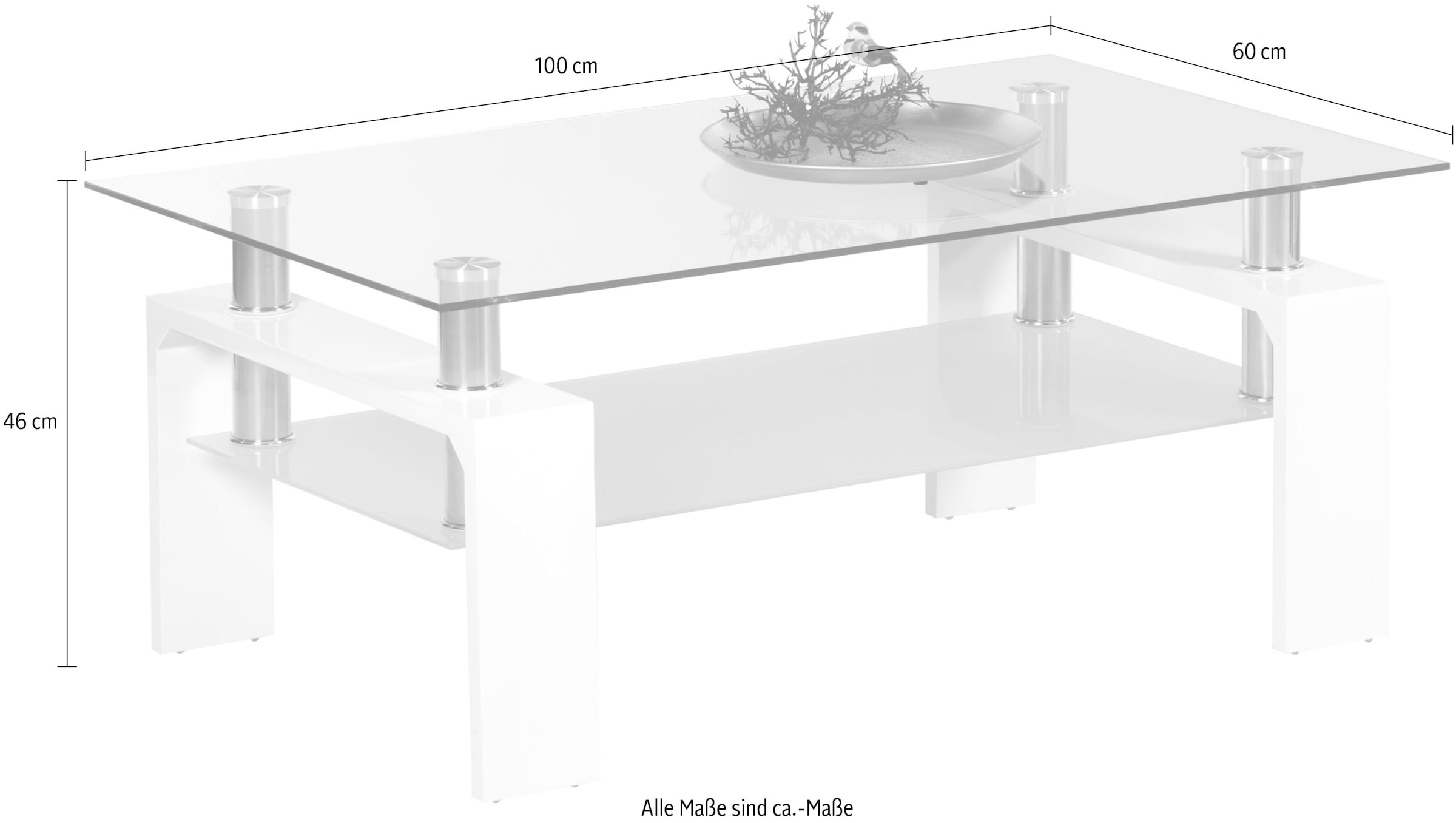 Stolkom Couchtisch »Mango II Glastisch, Wohnzimmertisch, Tisch Glas BxHxT 100x46x60 cm« Sicherheitsglas 8mm stark, Edelstahlrohre als Distanzhalter
