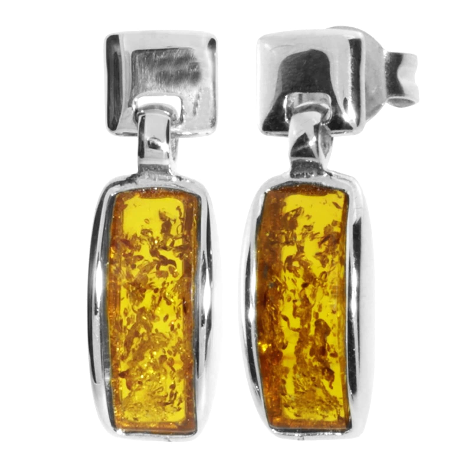 Moderne Ohrstecker aus Silber 925/000 mit "cognacfarbenen" Bernsteinen, 11x4 mm.