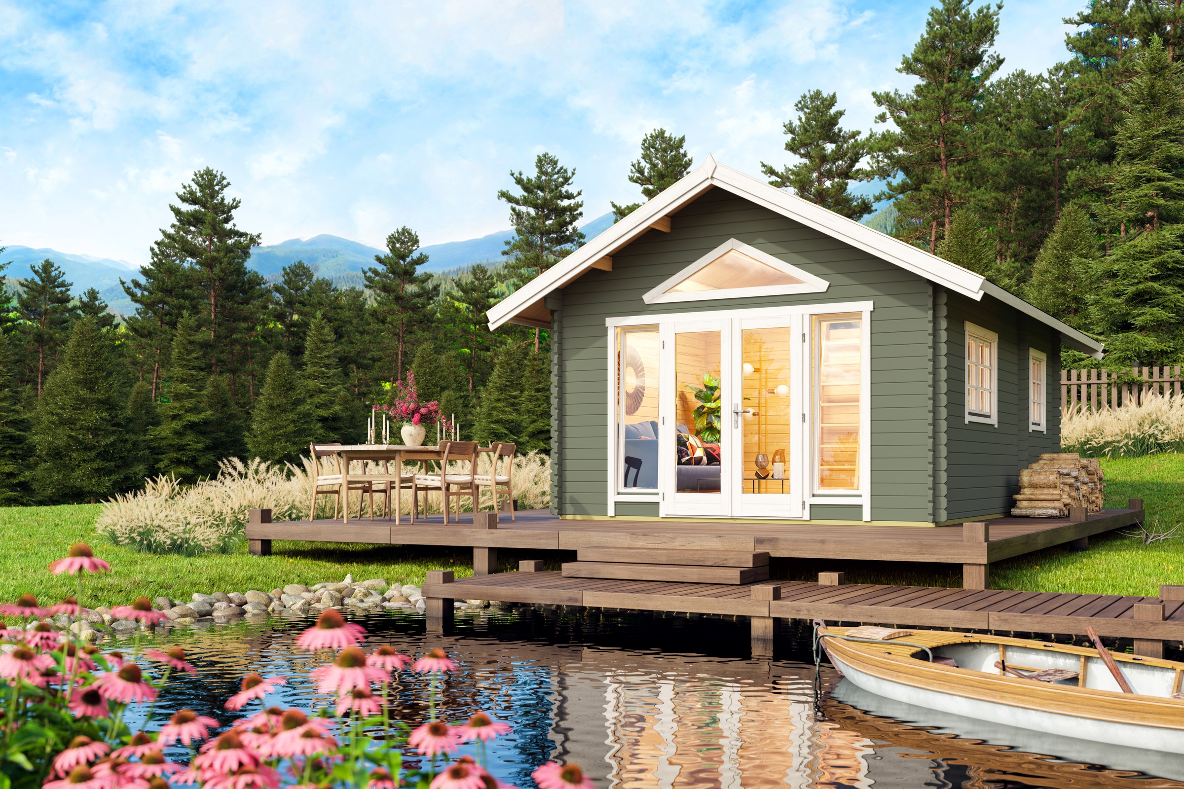 - Inkl. Fussbodenbretter und imprägnierte Unterkonstruktion