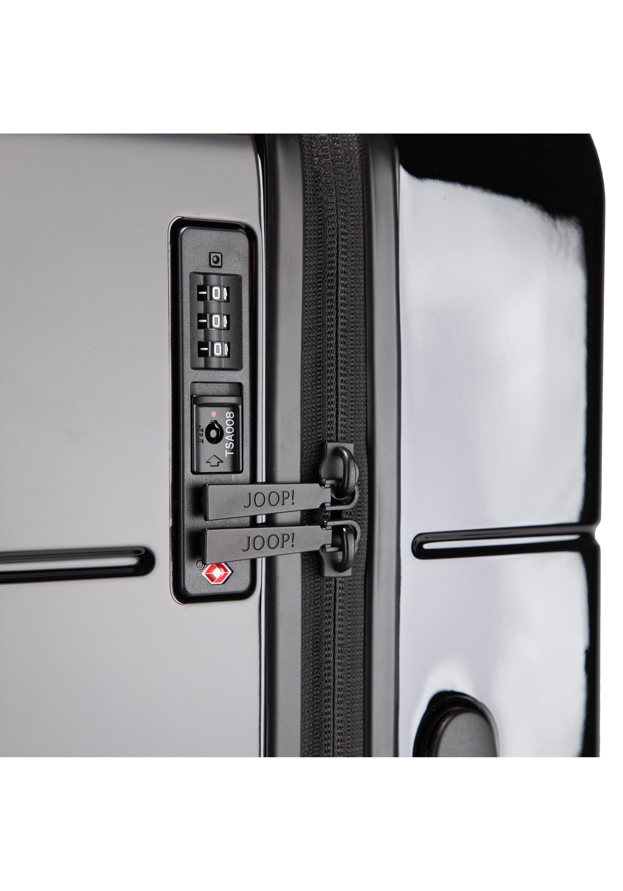 Hartschalenkoffer mit Leichtlaufrollen und TSA-Schloss von JOOP!. Strapazierfähiges Polycarbonat, ausziehbarer Griff, Signature-Details. 66,40x45,30x26,50cm (HxBxT)