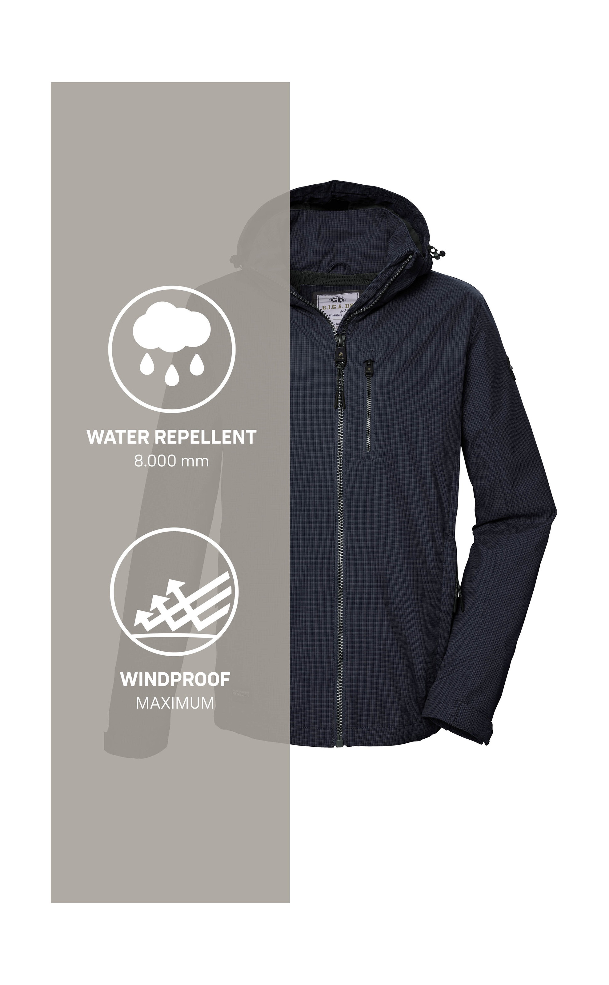 - winddicht, wasserabweisend, Wassersäule 8.000 mm