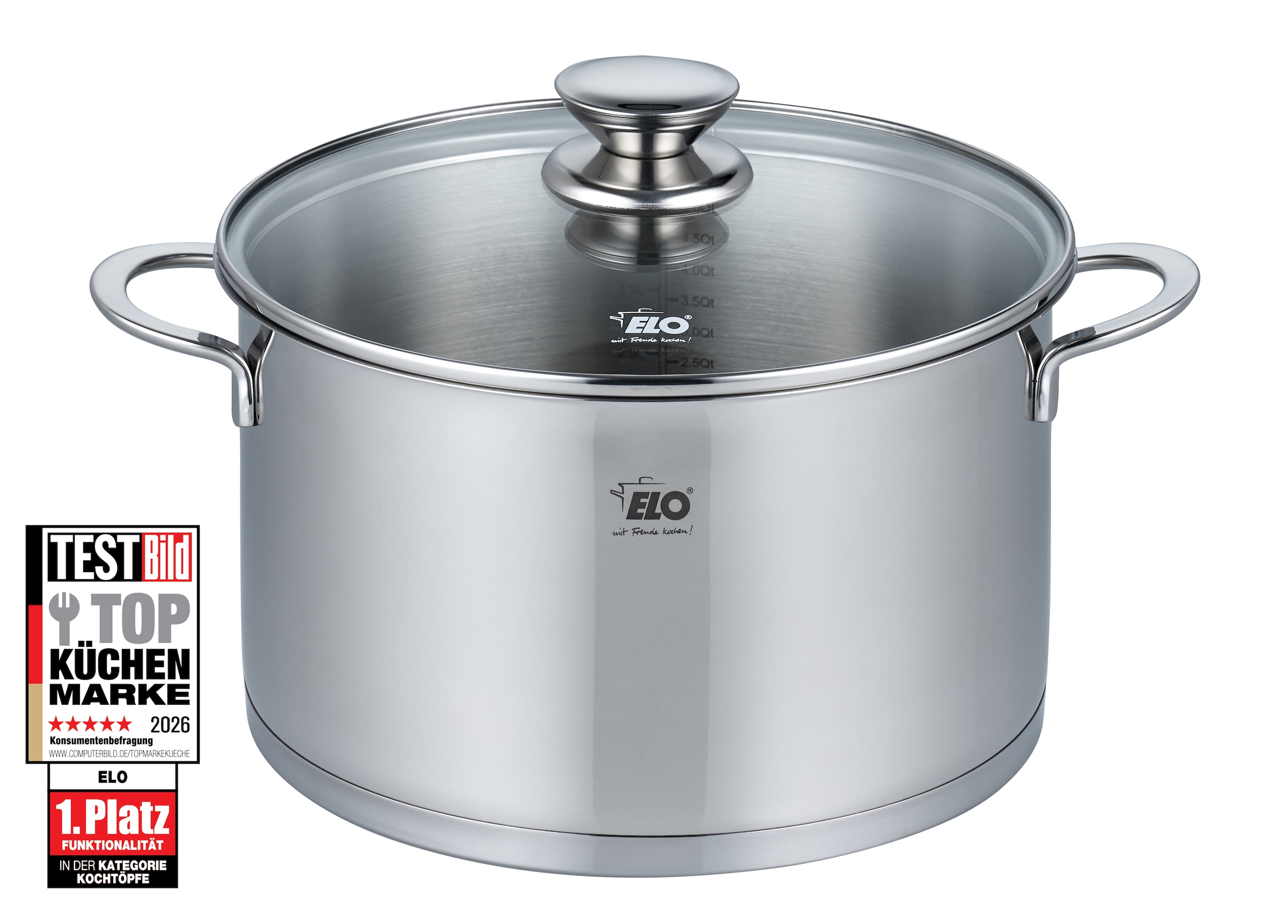 - GLASDECKEL: Der hitzebeständige Glasdeckel ist mit einem handlichen Kunststoffknopf, einem schlichten Edelstahlring und einem Lüftungsloch zum Druckausgleich versehen.