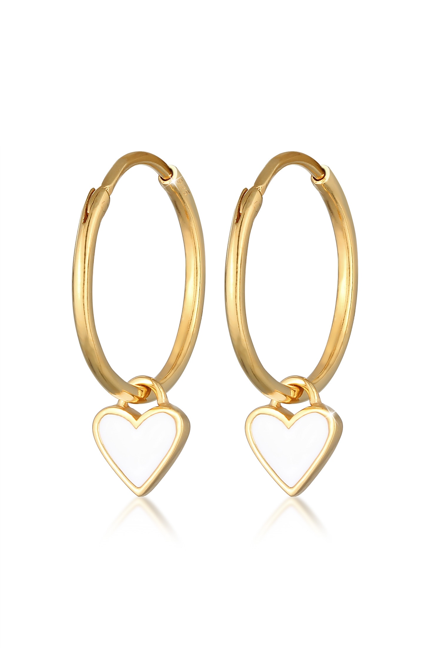 Klappcreolen aus 925/- Sterling Silber vergoldet Herz mit synth. Opal weiß