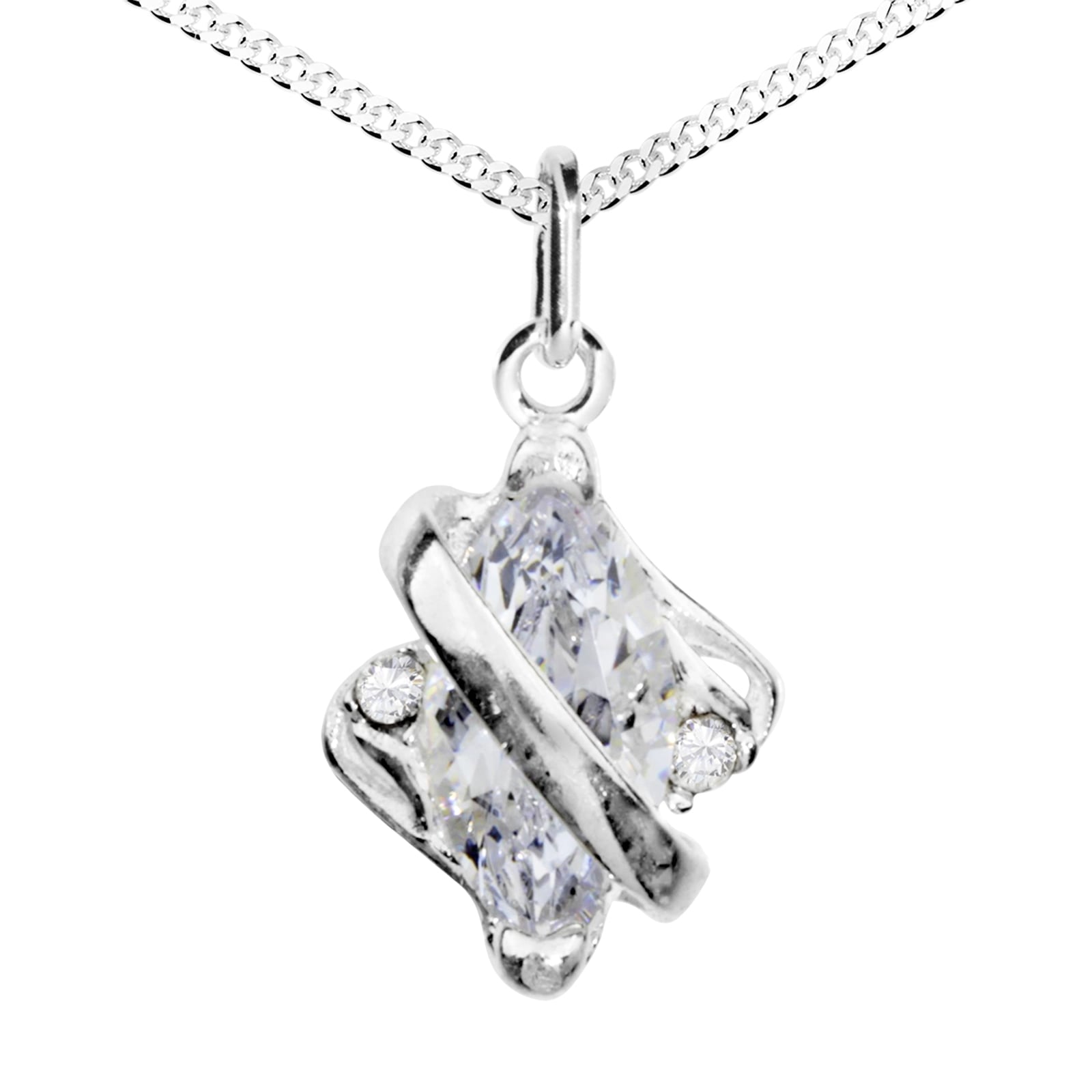 Zierlicher, moderner Anhänger aus Silber 925/000 mit Zirkonia, komplett mit einer 1,3 mm breiten und 40 cm, 42 cm oder 45 cm langen Panzerkette.