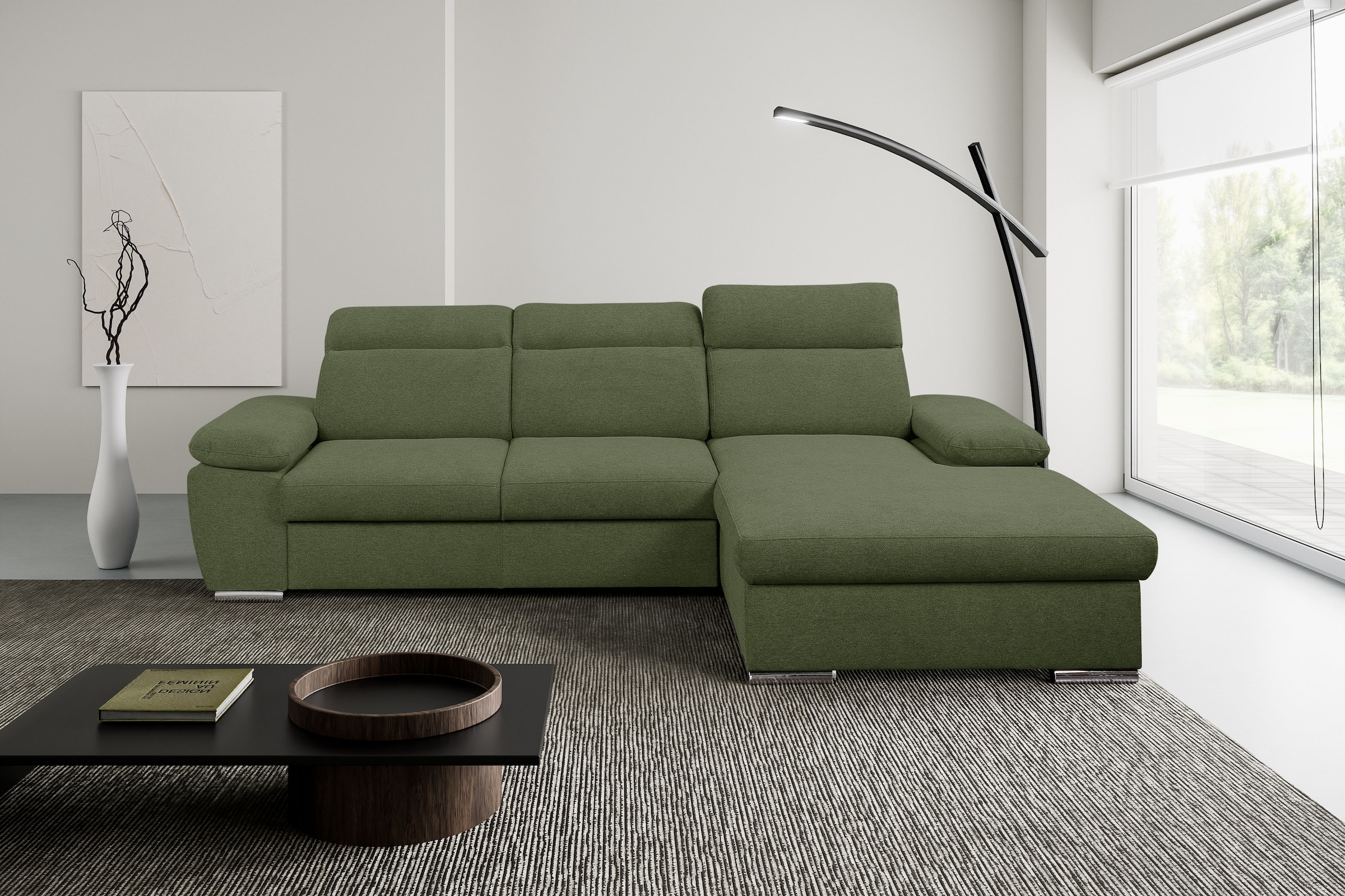 WERK2 Ecksofa »Palma modernes Schlafsofa mit Bettkasten, L-Form, B/T 282/185 cm« Kopfteile verstellbar