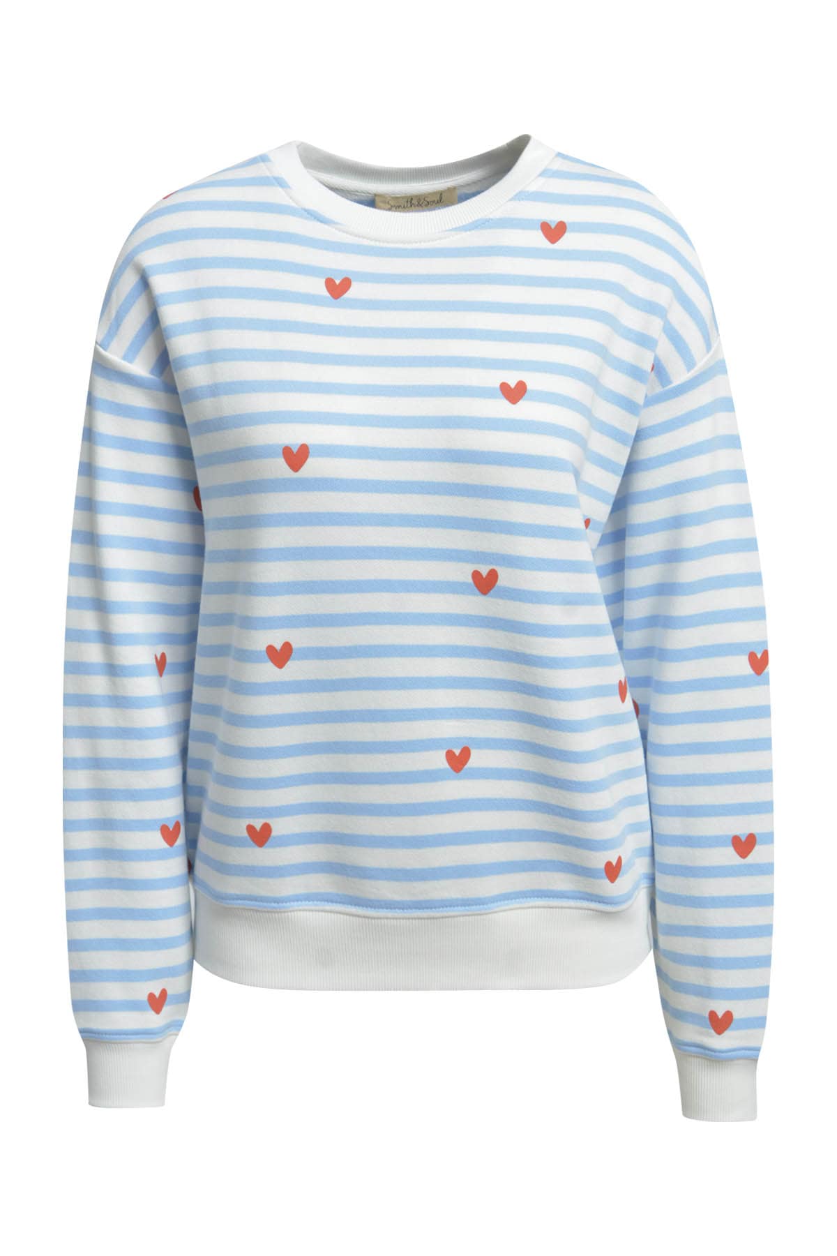 - Lockere Ärmel mit gerippten Bündchen und Saum