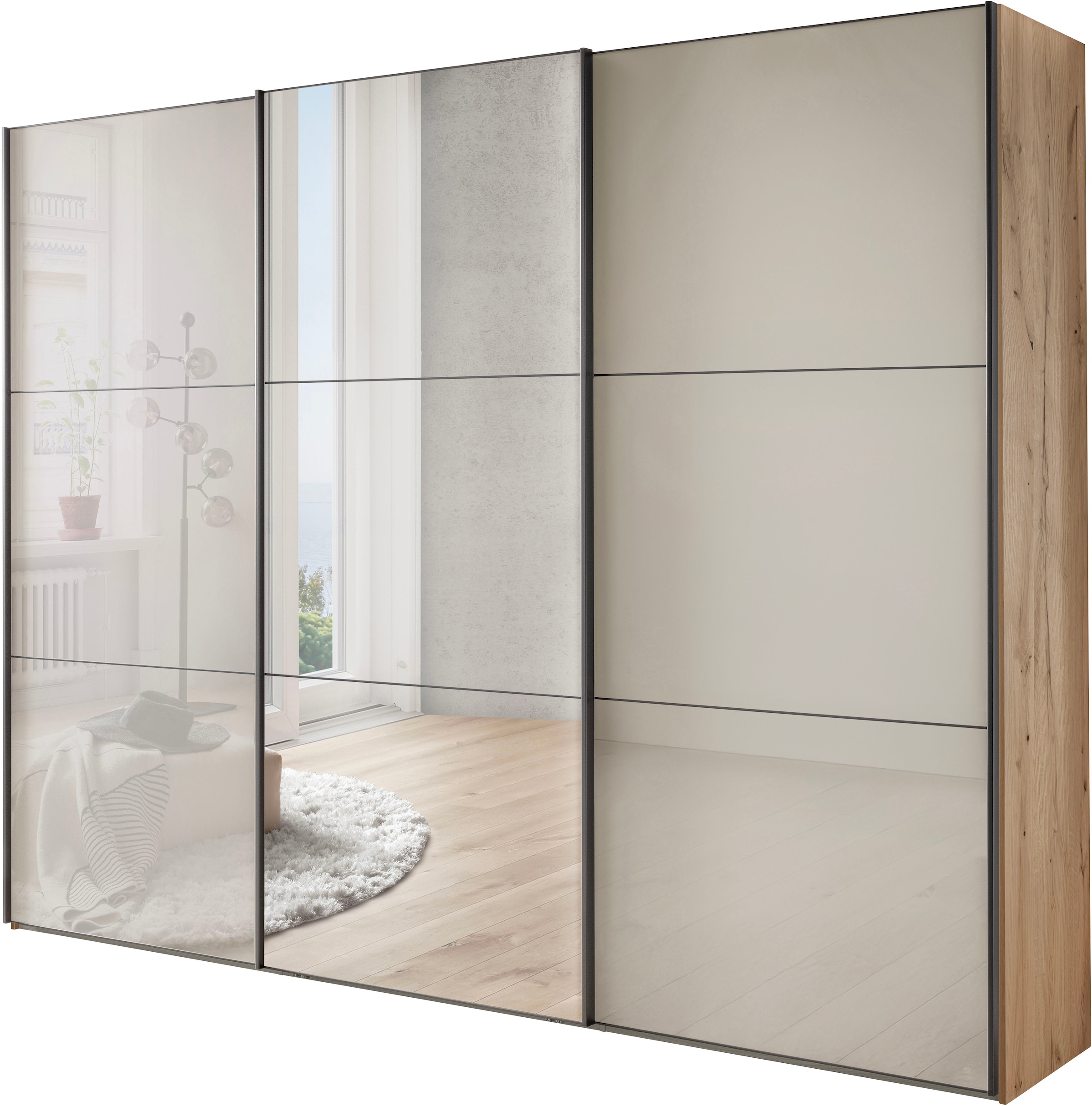 WIEMANN Schwebetürenschrank »Phoenix, Made in Germany, modernes Design, Highlight, Blickfang« Viele Farbkombinationen, in 4 Breiten und in 2 Höhen erhältlich, maximaler Staurraum, inkl.Einlegeböden, Wäscheböden u. Dämpfer