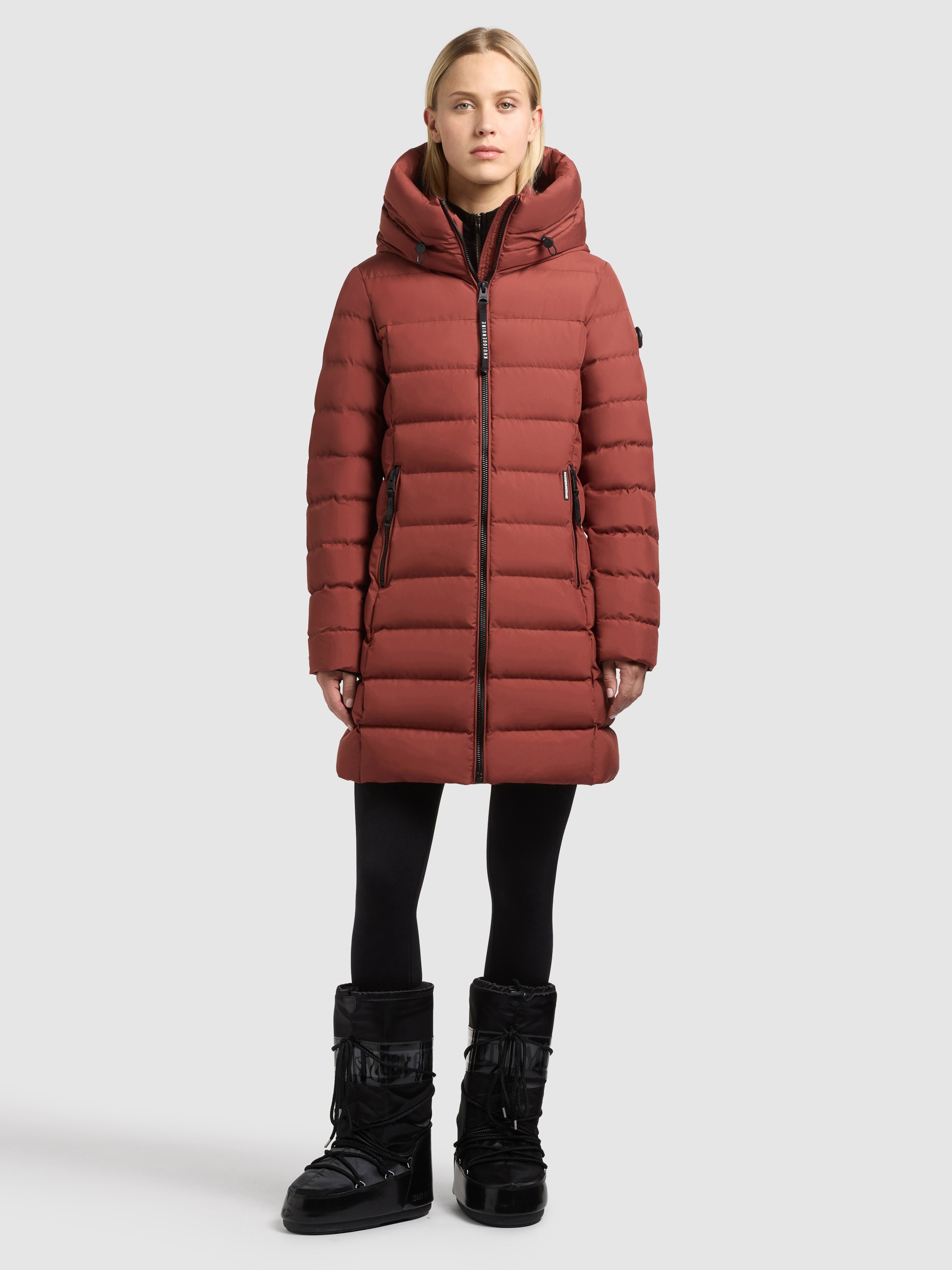 Der knielange khujo Mantel SIMMIE ist im Regular Fit geschnitten. Vor frostigem Winterwetter schützt dieser einfarbige Steppmantel durch eine große, hoch schließende Kapuze mit Kordelzug, einem Zwei-Wege-Reißverschluss und elastischen Bündchen am Ärmelfutter. Große Eingrifftaschen mit Reißverschluss, Wiener Nähte sowie ein Taillentunnelzug und Taschenbeutel mit Fleece komplettieren das Design.