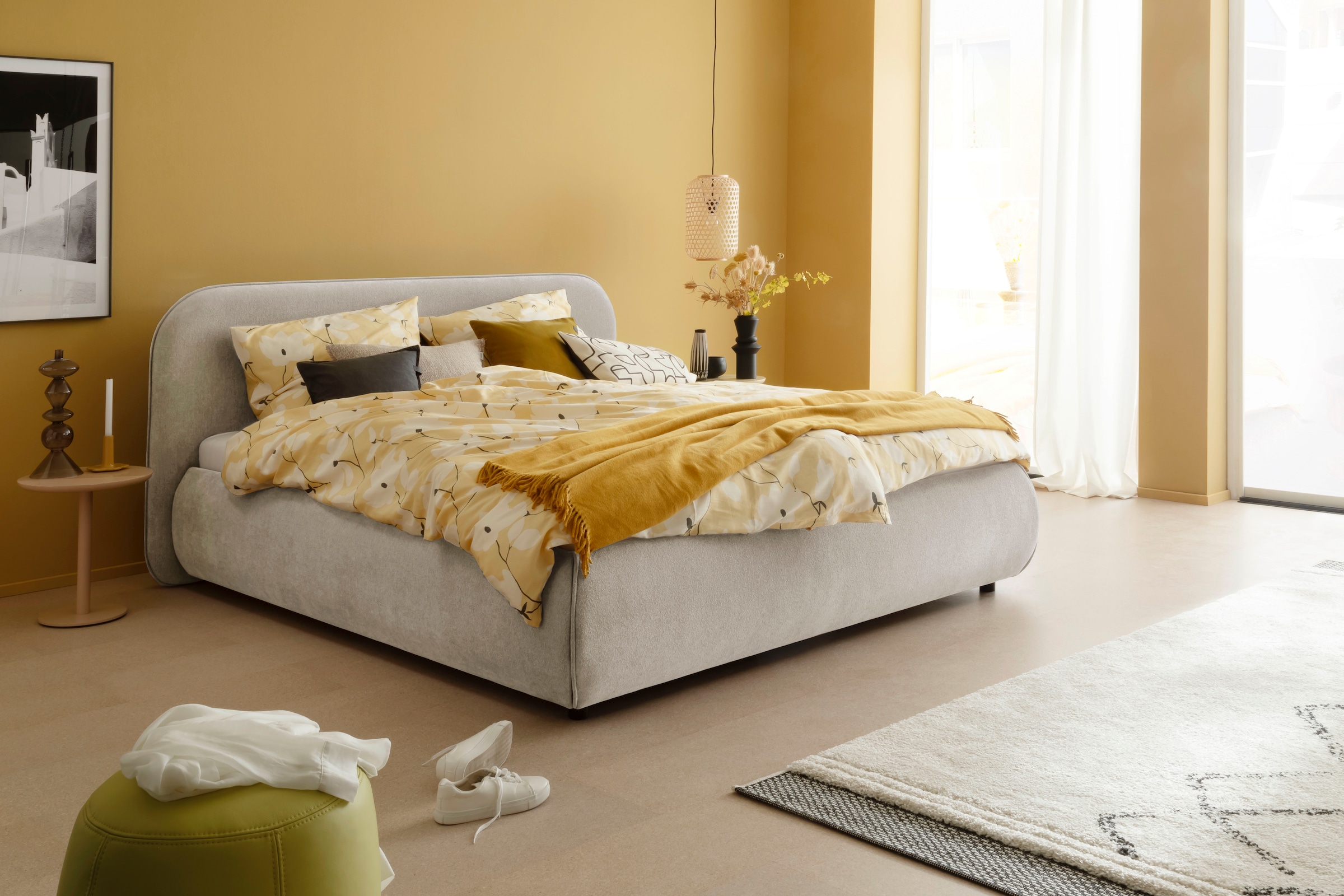- Kopfteil abgerundet mit umlaufendem Keder: Weiche Form, stilvolles Detail! Das abgerundete Kopfteil mit Keder verleiht dem Bett eine elegante und einladende Optik.