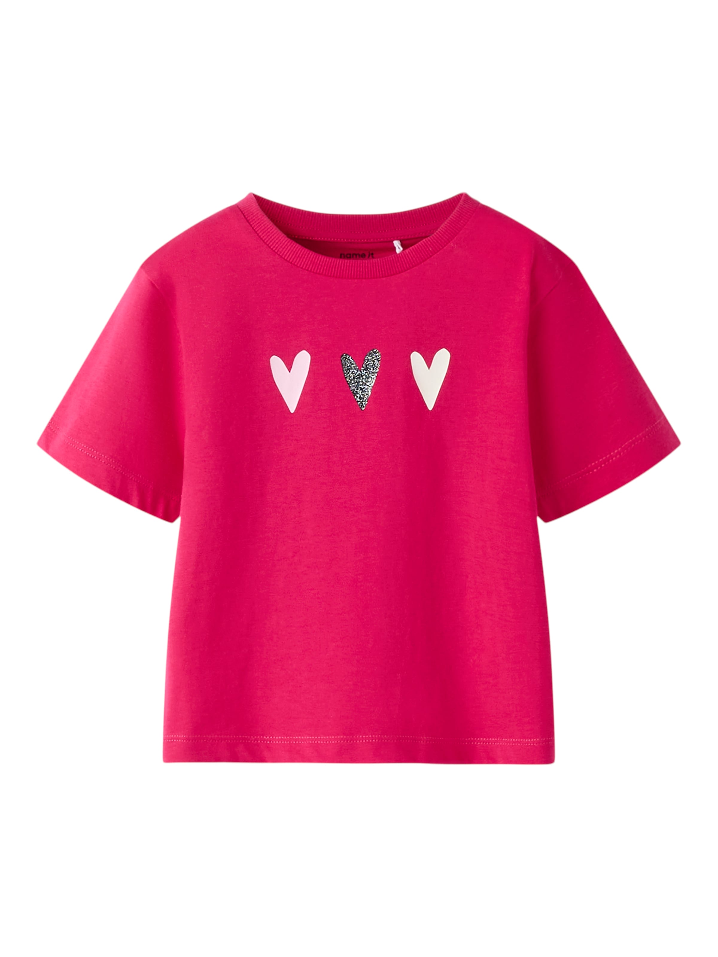 Kombistarkes Mädchen-T-Shirt der Marke Name It. Mit einem normal breiten Schnitt. . Dank des elastischen Jerseystoffs fällt das Oberteil weich und ist bequem.