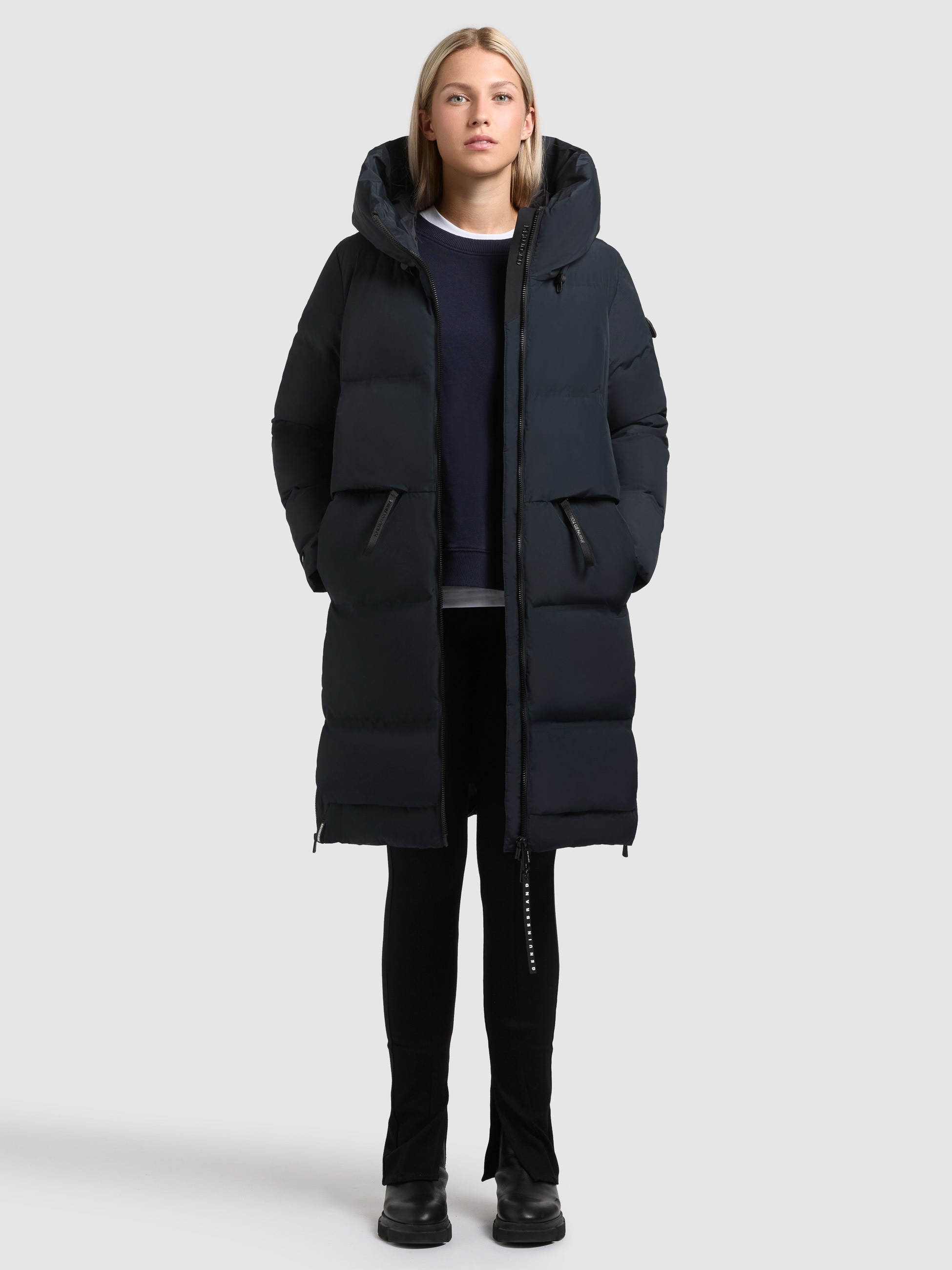 Mit dem khujo Mantel AROMA2 setzt du ein modisches Statement, dass für echte Hingucker sorgt. Dieser Steppmantel im Loose Fit ist aus einem wasserabweisenden Obermaterial gefertigt und die Seitenschlitze mit Reißversschluss sorgen zudem für ausreichend Flexibilität. Die große, gefütterte Kapuze mit elastischem Kordelzug, ein Zwei-Wege-Reißverschluss mit Windschutzblende sowie Reißverschluss- und Eingrifftaschen mit Taschenbeuteln aus Fleece runden das Design gelungen ab.