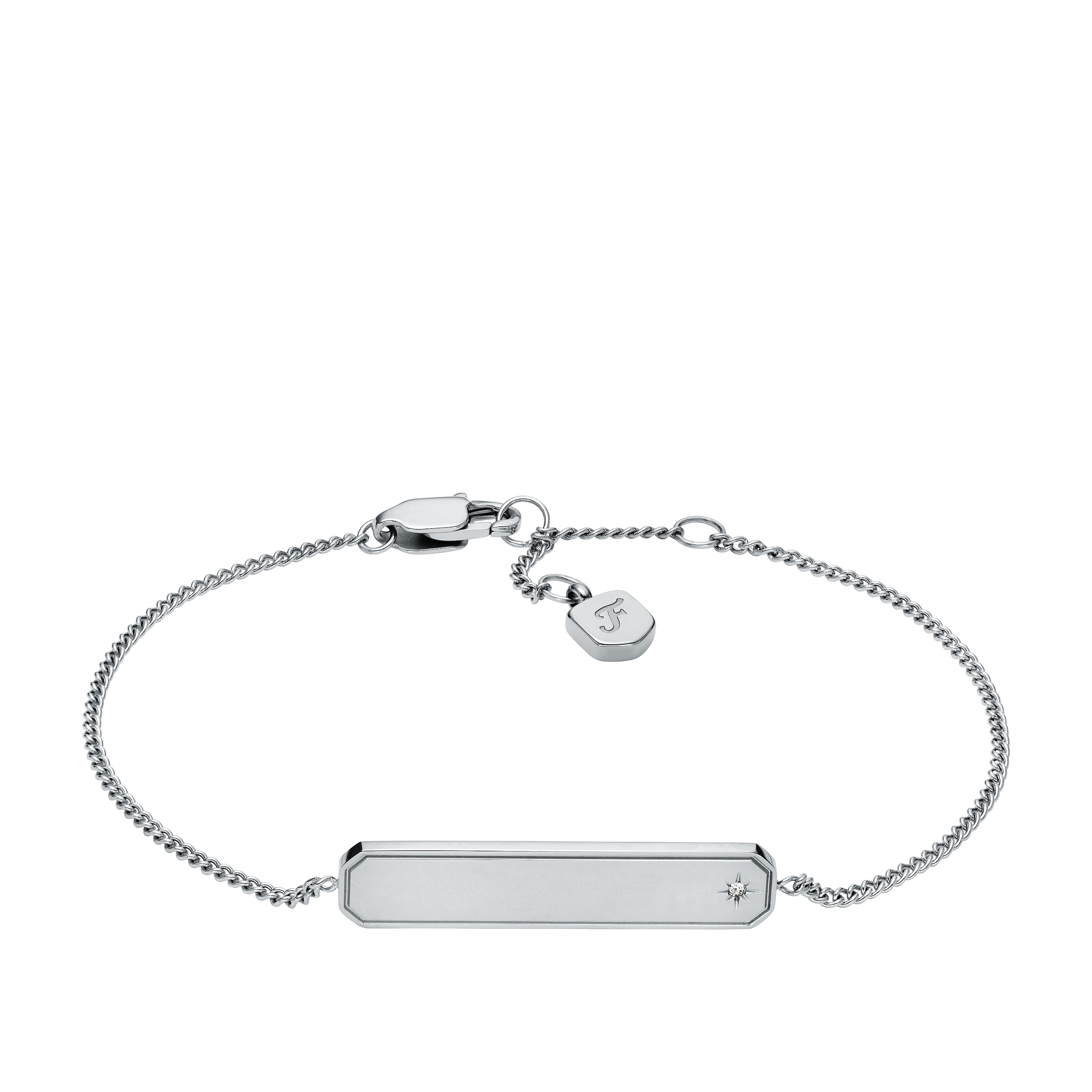 Dieses zarte Armband mit eleganter ID-Plakette sorgt für einen modernen, zurückhaltenden Look. Es ist aus poliertem Edelstahl gefertigt und für ein schlichtes und raffiniertes Design mit einem dezenten Stern und Glasstein verziert. Ein verstellbarer Karabinerverschluss ermöglicht sicheres, angenehmes Tragen.