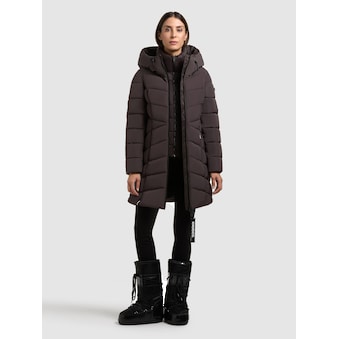 Der khujo Mantel TAMKE lässt sich dank eines wattierten und herausnehmbarem Einsatz mit Stehkragen optimal an die Wetterlage anpassen. Der Steppmantel bietet zudem eine große, hoch schließende Kapuze und elastische Bündchen am Ärmelfutter. Deine Essentials kannst Du in einer Innentasche und mit Fleece gefütterten Reißverschlusstaschen verstauen. Ein Zwei-Wege-Reißverschluss mit Windschutzblende und Magnetverschluss, ein Kordelzug an der Kapuze und Wiener Nähte komplettieren die Winterjacke.