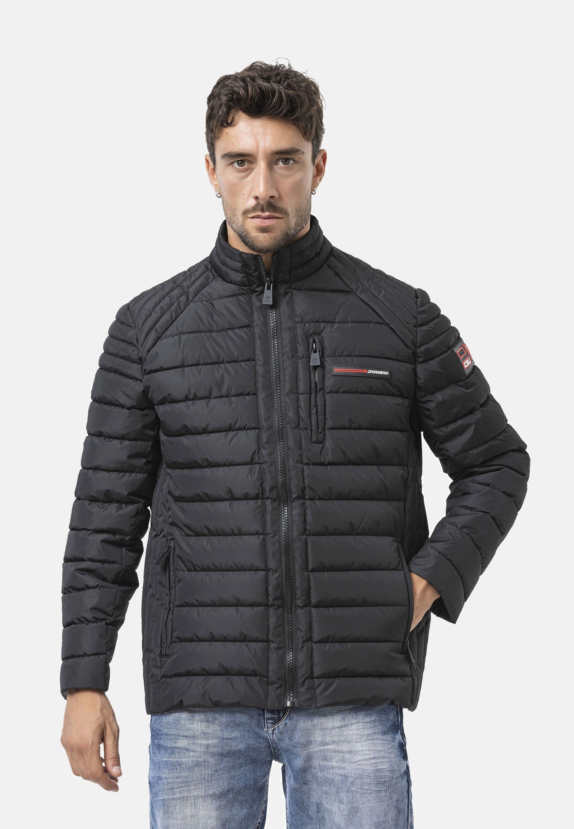 Die Herren Jacke ist für einen souveränen Style und Auftritt rundum maskulin ausgestattet. Sie bietet einen Kragen und aufwändige Ärmelmanschetten mit Schlitz. Der verwendete Metall-Zipper wird von einer Blende mit einer Metallknopfleiste ergänzt. Dazu gibt es zwei aufgesetzte Seitentaschen mit Patte sowie eine Brusttasche mit vertikalem Zipper. Die Männer Jacke besteht aus robustem Baumwoll-Twill und ist im Inneren mit Taft gefüttert. Die leichte Wattierung ist hochwertig im Rautenstepp verarbeitet. Die Urban Classics Jacke kommt im bequemen Loose Fit.