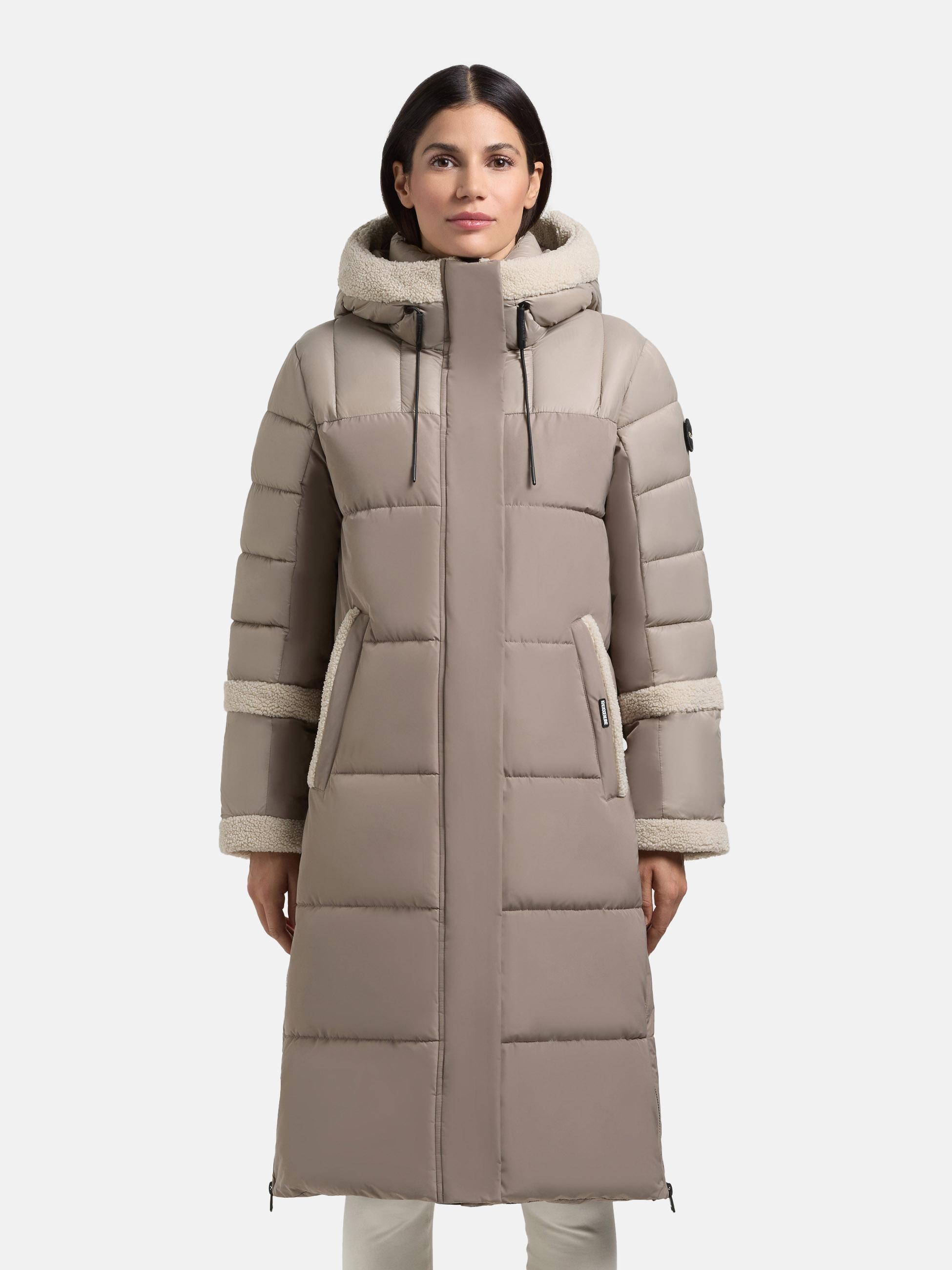 Warmer Damen Steppmantel mit Plüschelementen