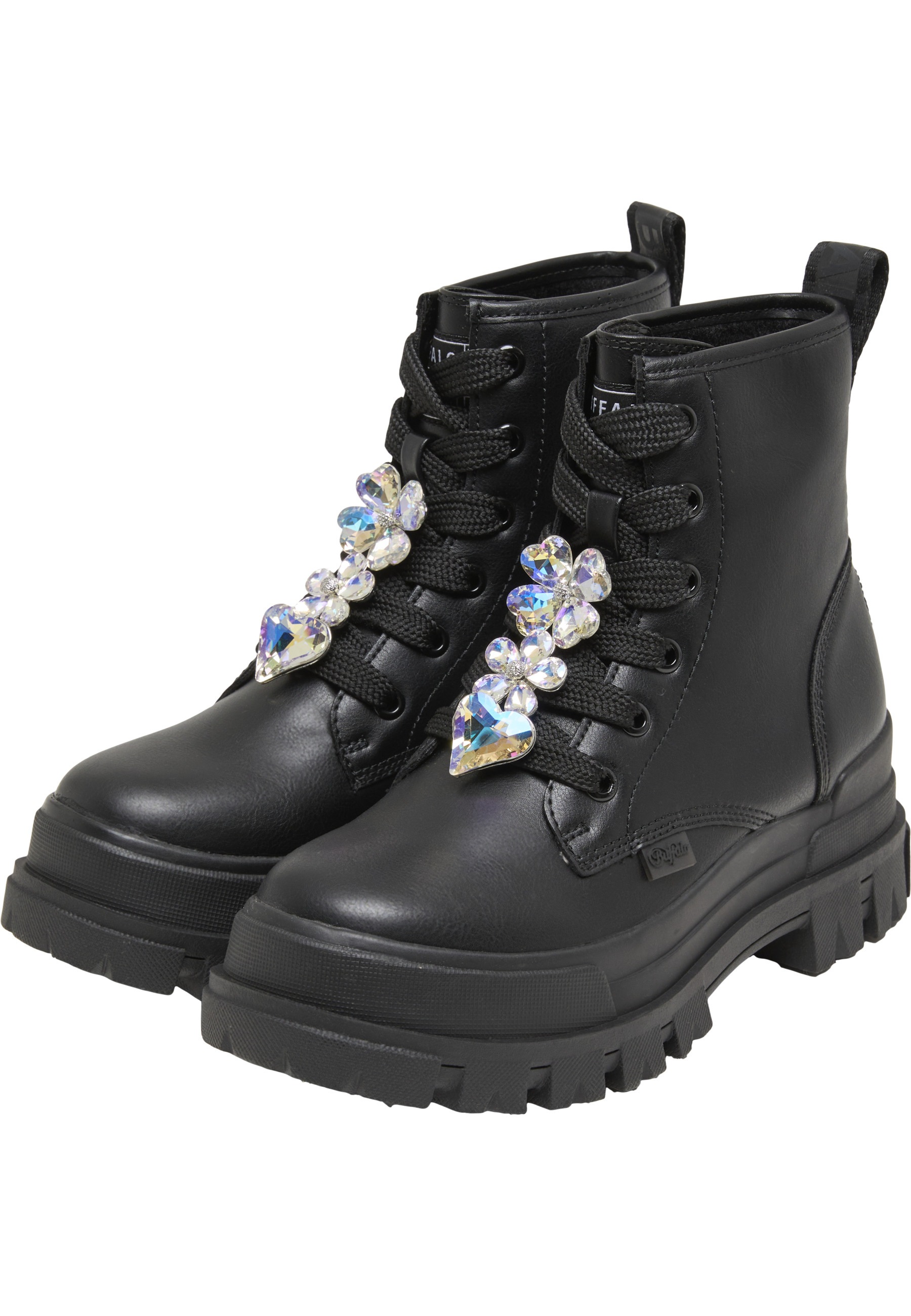 Boots, die mit knöchelhoher Silhouette und robuster Profilsohle Alltagstauglichkeit und verspielte Details verbinden. Das synthetische Obermaterial zeigt gestickte Blumen-Texturen mit dezenten Pailletten, die dem Schuh feine Struktur verleihen, während die klassische Schnürung sicheren Halt ermöglicht. Ein weiches Textilfutter aus Baumwolle sorgt innen für Atmungsaktivität, die gepolsterte Innensohle bietet dämpfenden Komfort und die thermoplastische Gummisohle garantiert Griffigkeit auf unterschiedlichen Untergründen. Der Schuh vereint markante Solenform und zarte Verzierung und eignet sich als auffällige Alltagsschuh-Option, die sowohl feminine Details als auch robuste Funktionalität vereint.
