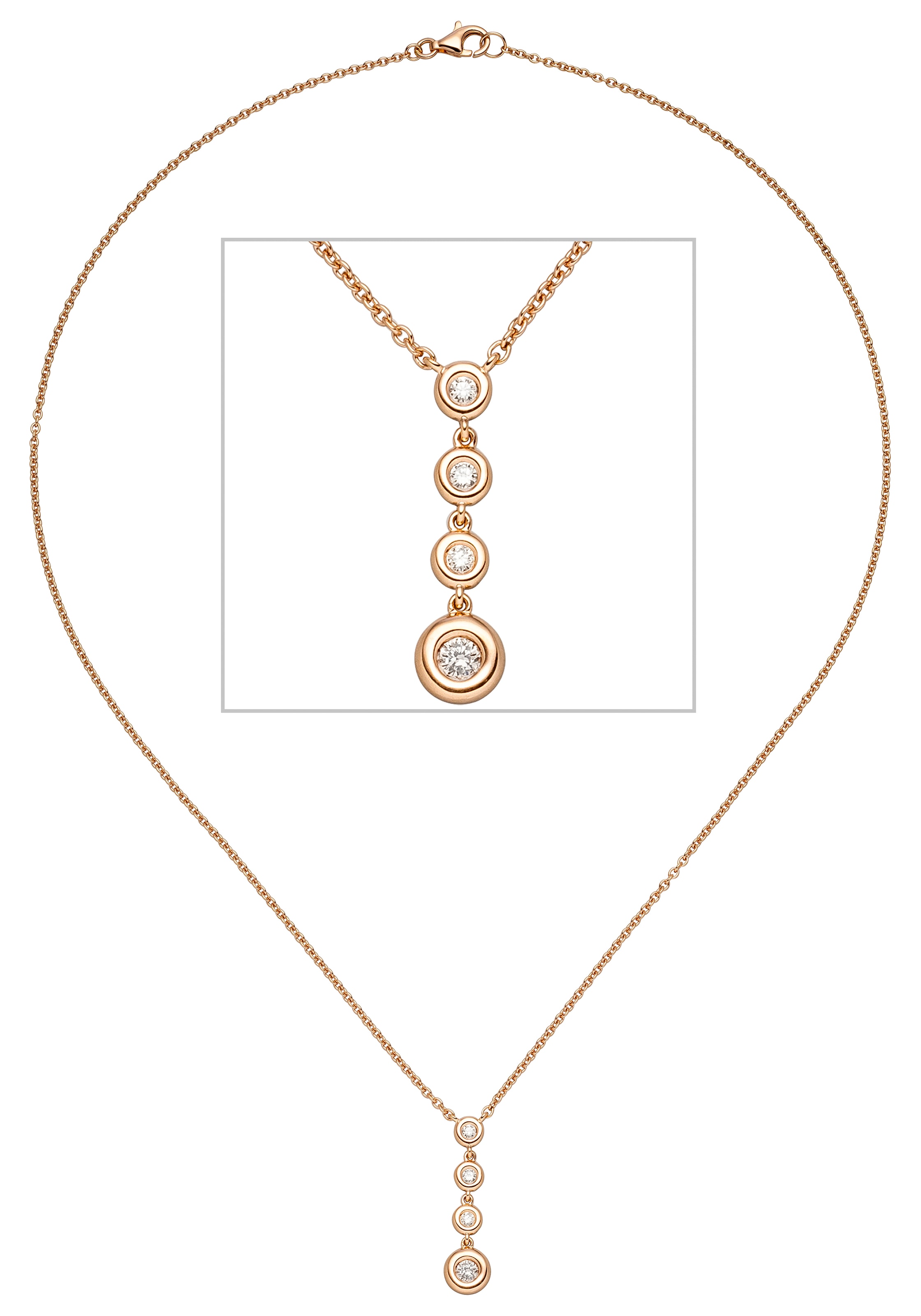 JOBO Kettenanhänger »Anhänger Roségoldanhänger 33 mm« 14 Karat 585 Roségold bicolor mit 52 Diamanten