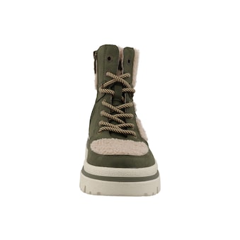 Winterstiefel mit robuster Konstruktion, die sich für den Alltag und nasse, kühle Tage eignet; dank klarer Linien wirkt die Silhouette zugleich sportlich und funktional. Das Obermaterial ist ein widerstandsfähiges Polyurethan‑Mischgewebe mit griffiger Haptik, ergänzt durch eine gepolsterte Schaftrandzone für angenehmen Tragekomfort. Die Schnürung mit stabilen Ösen sorgt für individuellen Halt, die breite Zunge reduziert Druckstellen und die profilierte, leicht erhöhte Sohle gibt Trittsicherheit auf weichem Untergrund. Dezente Nahtführung und eine verstärkte Zehenpartie unterstreichen die langlebige Verarbeitung, so dass sich die Boots als alltagstaugliche, wärmende Begleitung im Winter empfehlen.