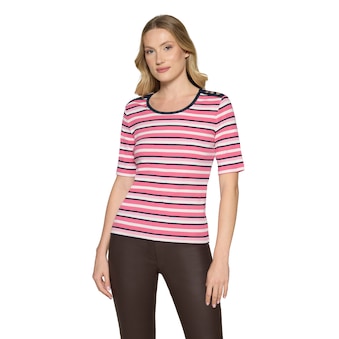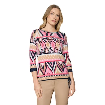 Diese Schlupfbluse ist ein echtes Highlight für Ihre Garderobe! Das grafische Design verleiht ihr eine moderne, stilvolle Note, während der lässige Schnitt und das angenehme satinierte Material für höchsten Tragekomfort sorgen. Ganz ohne Verschluss überzeugt sie durch ihre schlichte Eleganz und ist der perfekte Begleiter für entspannte Freizeit-Looks mit einem Hauch von Trendbewusstsein.