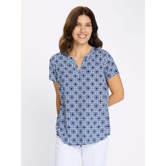Sie schmeichelt der Figur und sieht dabei einfach nur klasse aus: Druckbluse mit lässig überschnittenen Schultern und formgebenden Brustabnähern. 100% Viskose. Maschinenwäsche.