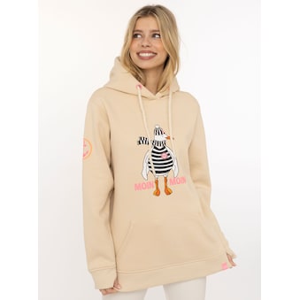 Trendiger Damen-Hoodie von Zwillingsherz mit animalischem Leo-Print. Kombinierbar für das Freizeit-Outfit. Durch die weiche Sweat-Qualität fühlt sich das Oberteil weich auf der Haut an.
