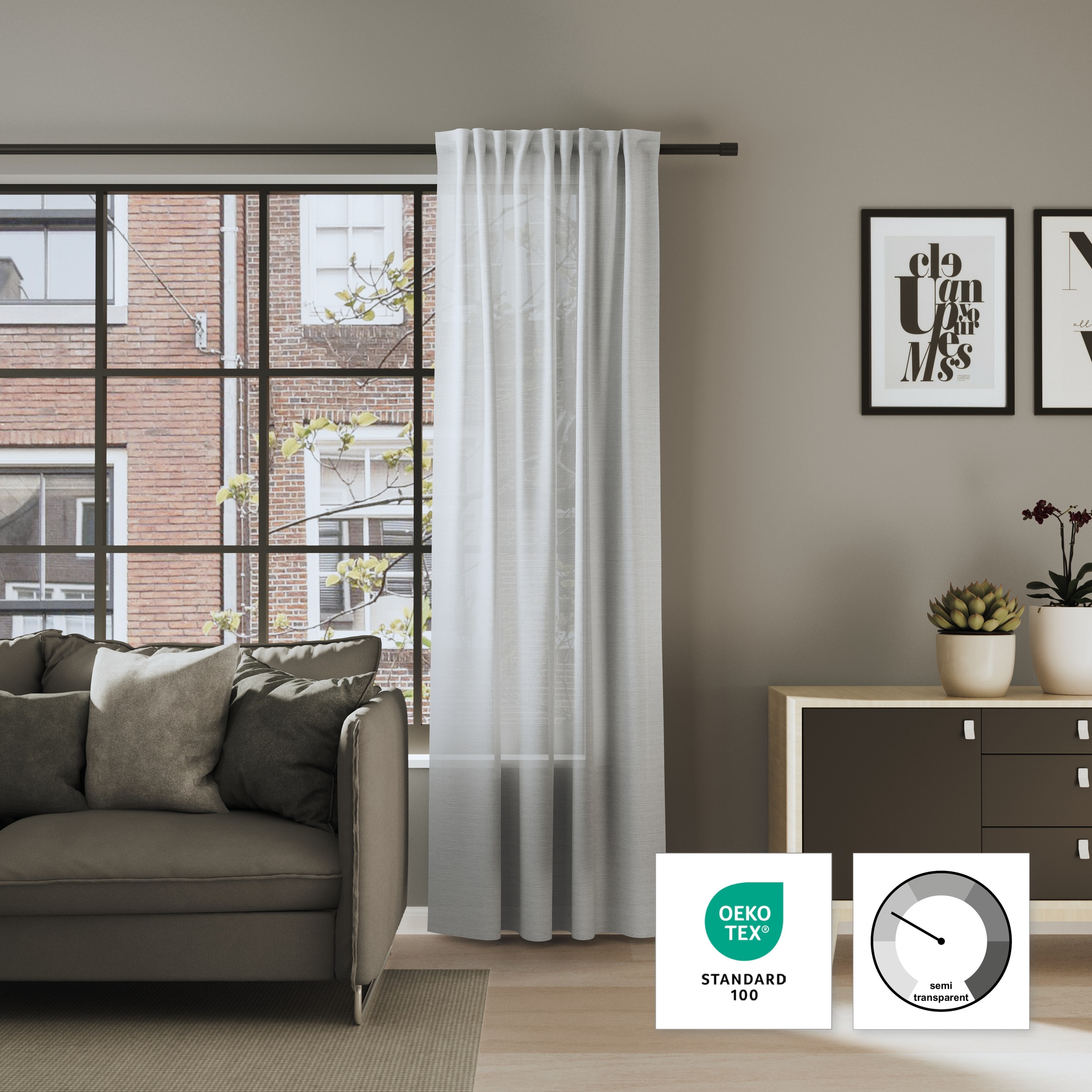 - halbtransparenter Stoff dämpft einfallendes Licht und bietet einen leichten Sichtschutz