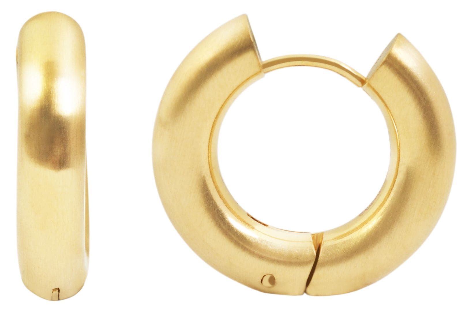 Die Creole "Miro" ist eine elegante Klappcreole aus hochwertigem Edelstahl, die sich perfekt für den Alltag sowie für besondere Anlässe eignet. Erhältlich in verschiedenen Größen mit einem Durchmesser von 8 mm, 10 mm, 12 mm, 14 mm, 16 mm und 18 mm sowie einer Stärke von 2,5 mm, bietet "Miro" die passende Größe für jede Gelegenheit. Die goldfarbene Beschichtung und die gleichmäßige Struktur auf der Oberfläche verleihen dieser schlichten Creole eine besondere Optik. Der praktische Klappverschluss sorgt für sicheren Halt und ein einfaches An- und Ablegen.