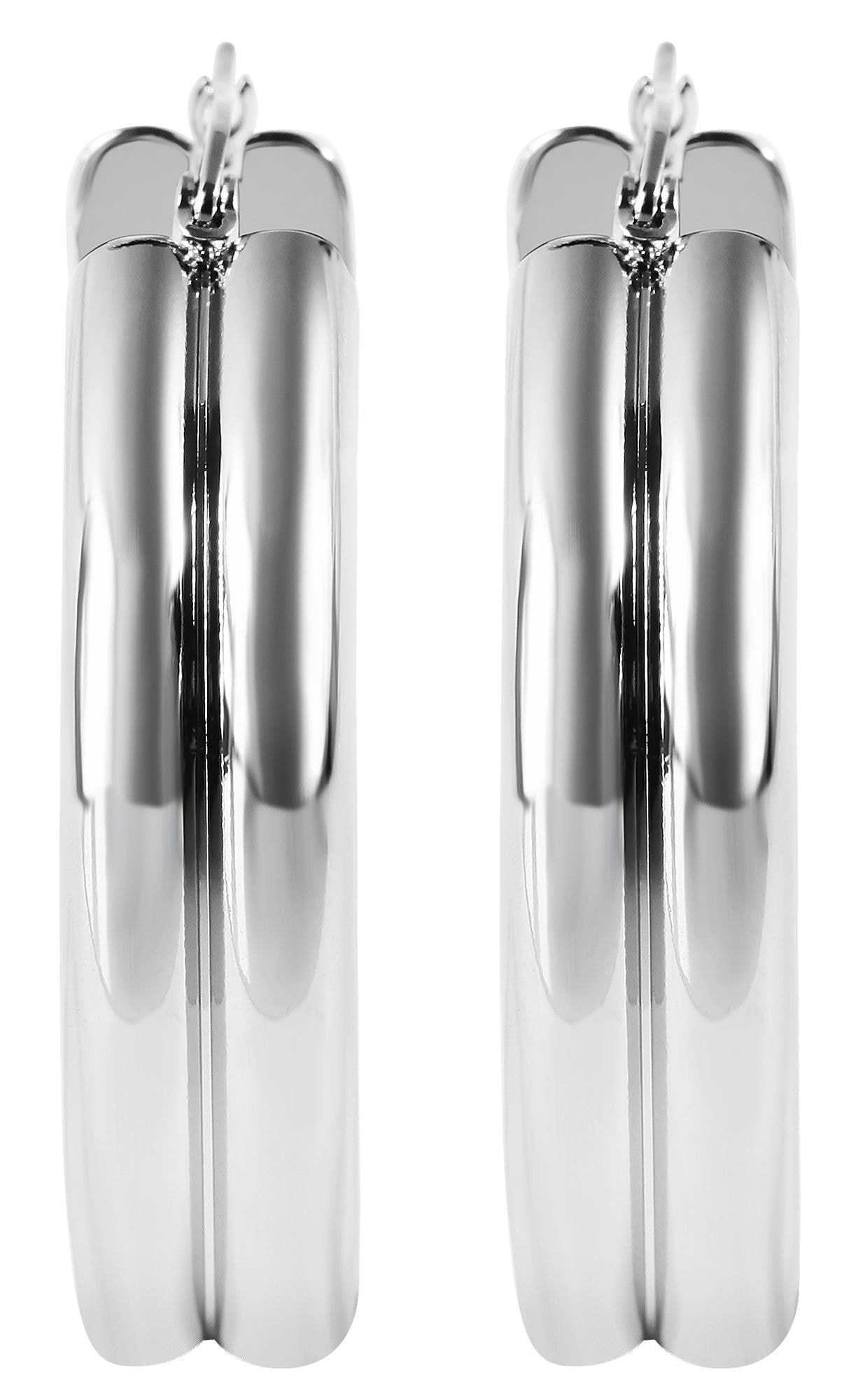 Die Creolen in einer außergewöhnlichen Form wurden aus Edelstahl gefertigt und präsentieren sich in schlicht glänzender Optik. Ob festlich oder leger, dieser Edelstahl Schmuck wird begeistern und kann zu allerhand Outfits kombiniert werden. Ohne Verschluss wird das Schmuckstück durch dass Ohrloch gezogen und sorgt auch so für sicheren Halt. Die Creolen haben eine Höhe von 35 mm, eine Breite von 5 mm und eine Stärke von 7 mm und sind unten, nach hinten verlaufend massiv. Die Creolen sind ein moderner Begleiter für den Alltag und ein Highlight für jede modebewusste Frau.